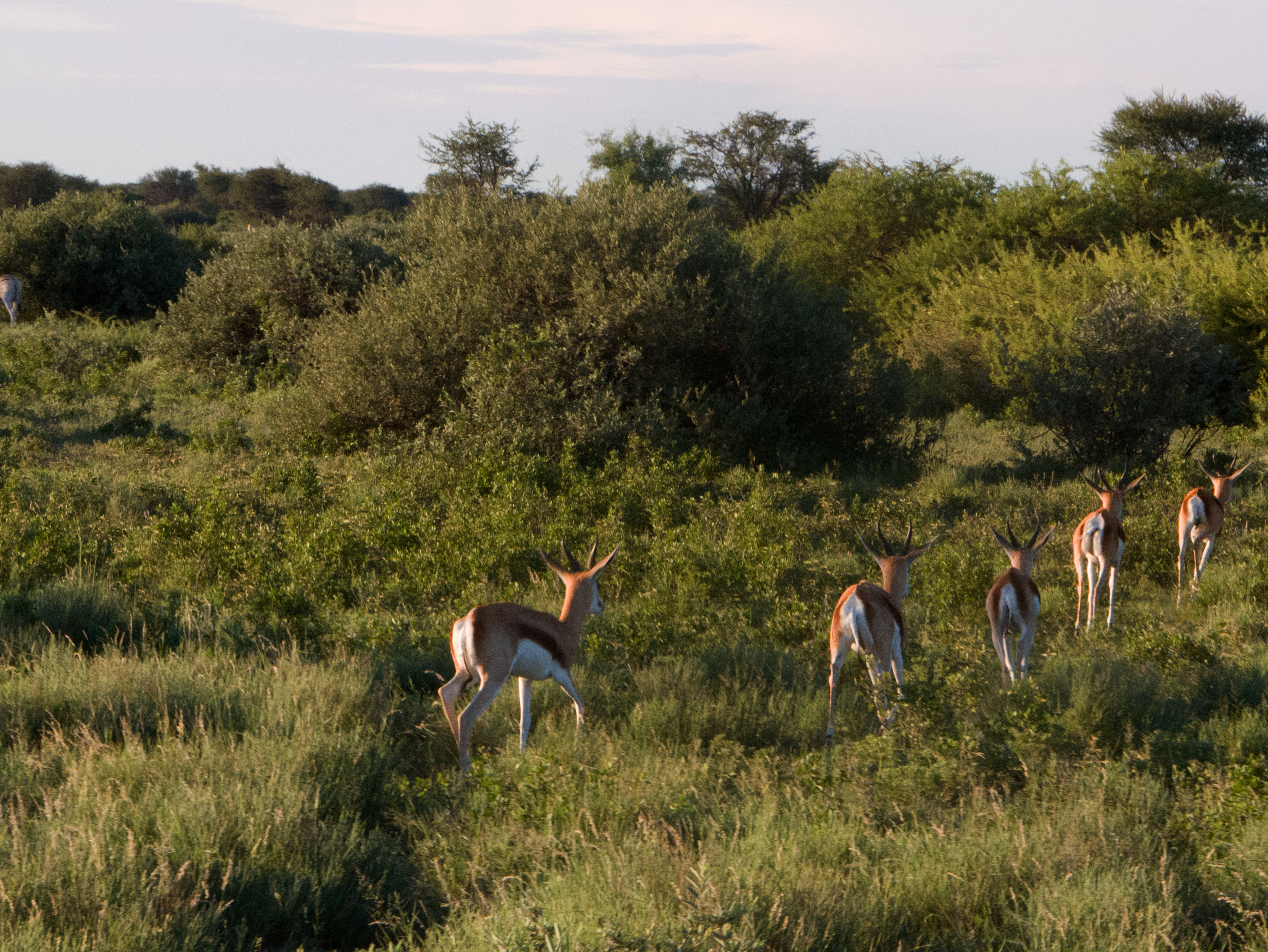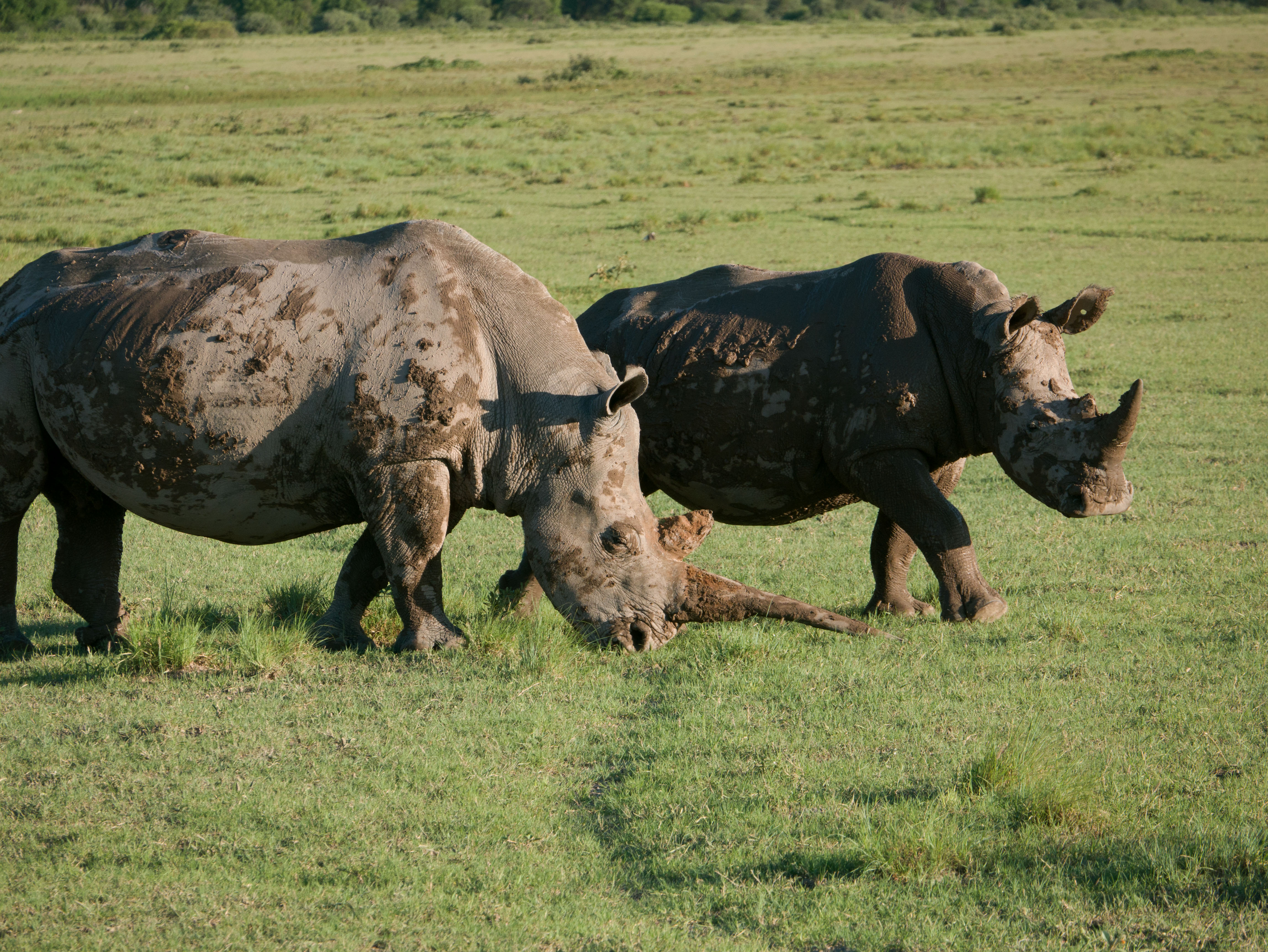 En continuant notre exploration, nous sommes tombés nez à nez avec deux autres léopards en pleine chasse. Nous avons pu les suivre et observer leur façon de faire. Malheureusement pour eux (et comme le démontre les photos) ils n’ont rien eu à se mettre sous la dent pour cette fois-là. Les antilopes leur ont tenu tête. En fin de parcours, la plus vieille femelle rhinocéros blanc du parc avec son petit ont montré le bout de leurs cornes. Celle de la mère était impressionnante. En résumé, étoiles dans les yeux garanties après ce premier safari !