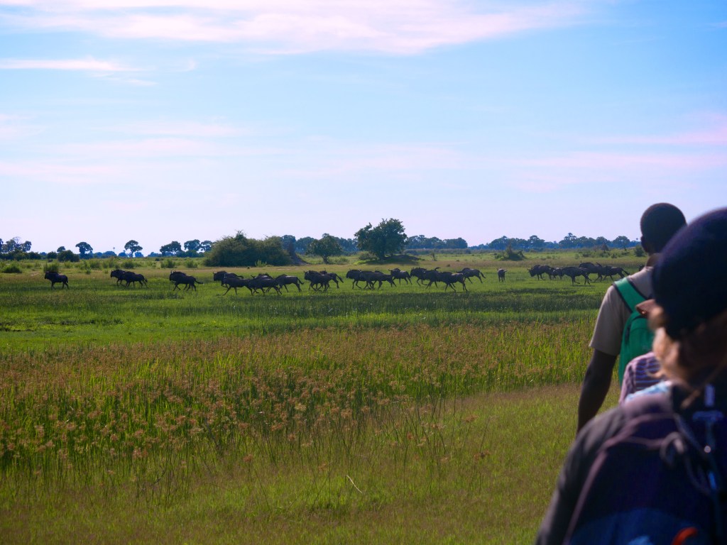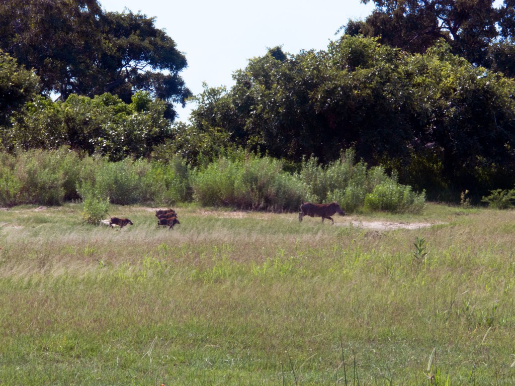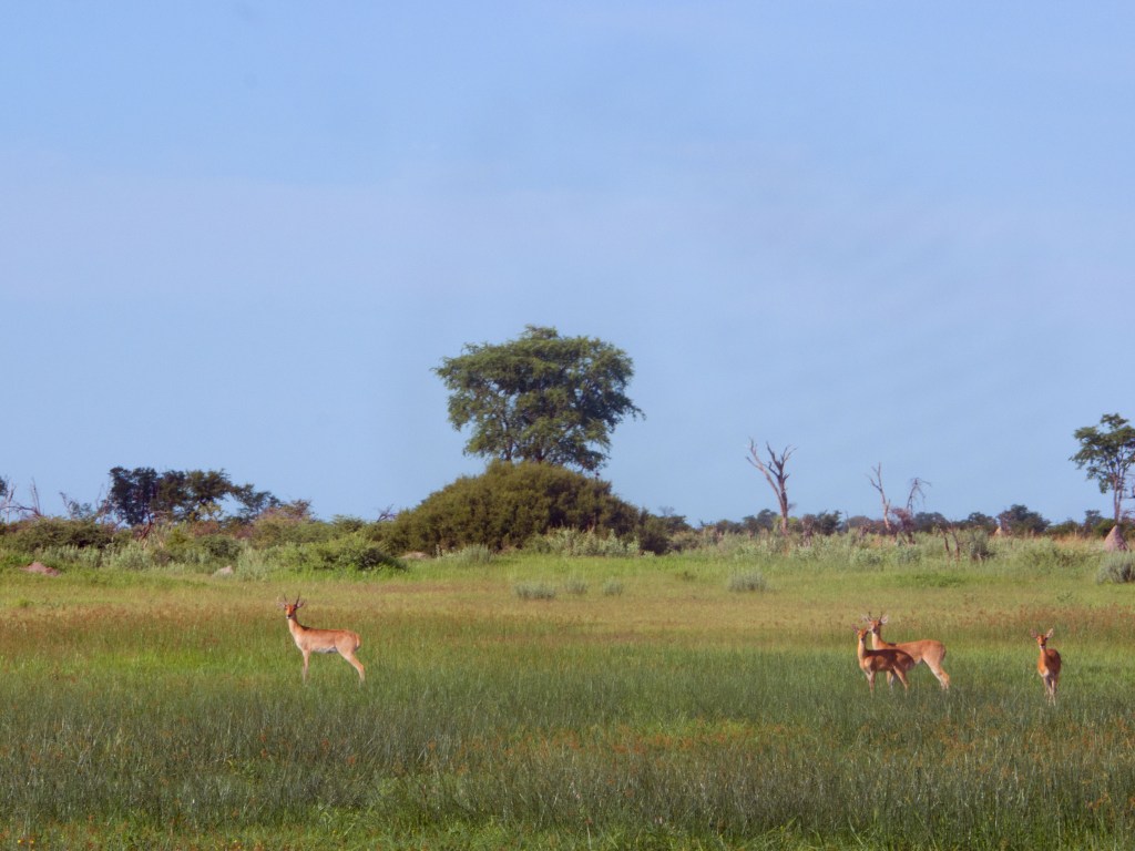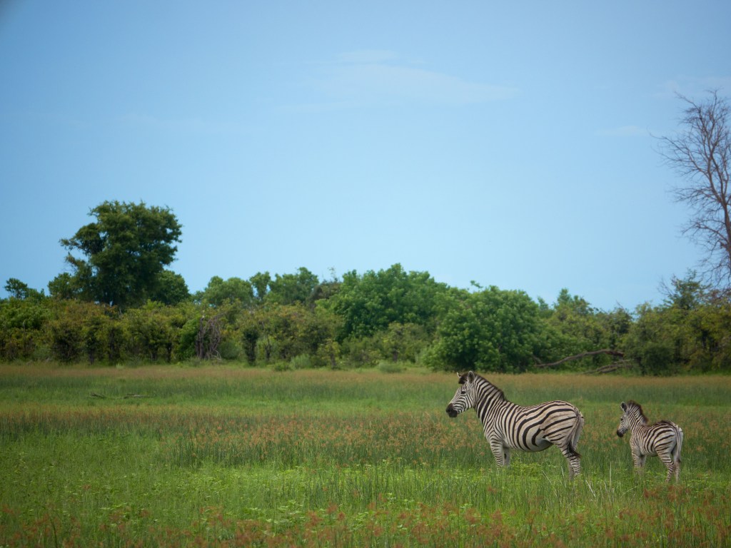 Notre prochaine destination nous amène à Maun. Nous y passons uniquement une nuit avant de nous rendre au Delta d’Okavango. Cette réserve naturelle de 15’000 km carrée (trois fois la taille du canton de Berne) abrite de nombreuses espèces d’animaux tel que des éléphants, girafes, zèbres, diverses sortes d’antilopes, hippopotames, babouins, phacochères (pumba pour Natacha 😉 ), lions et diverses sortes d’oiseaux.