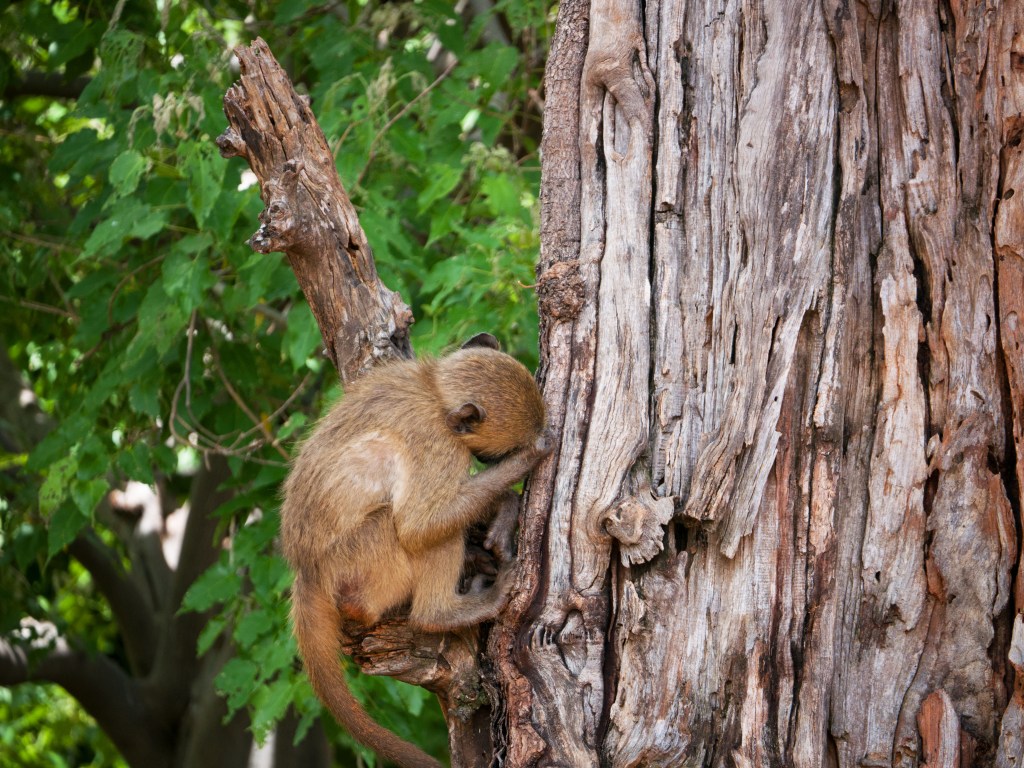 Sur le chemin du retour nous croisons beaucoup de babouins, mais notre guide ne veut pas vraiment s’arrêter pour nous laisser le temps de les observer. Nous comprenons plus tard seulement en arrivant au camp qu’en faite les babouins sont absolument partout dans la ville. C’est pourquoi, il ne pensait pas que nous soyons intéressés par eux.
