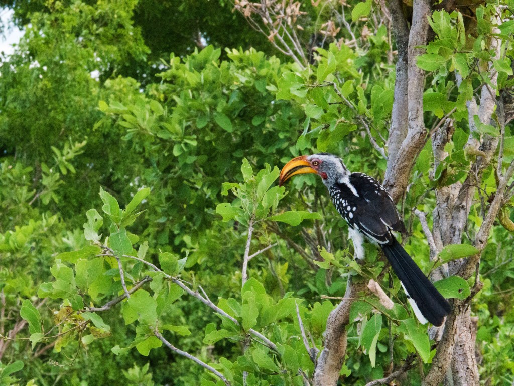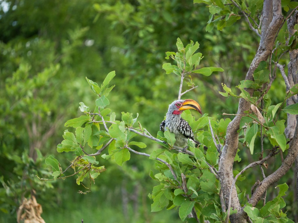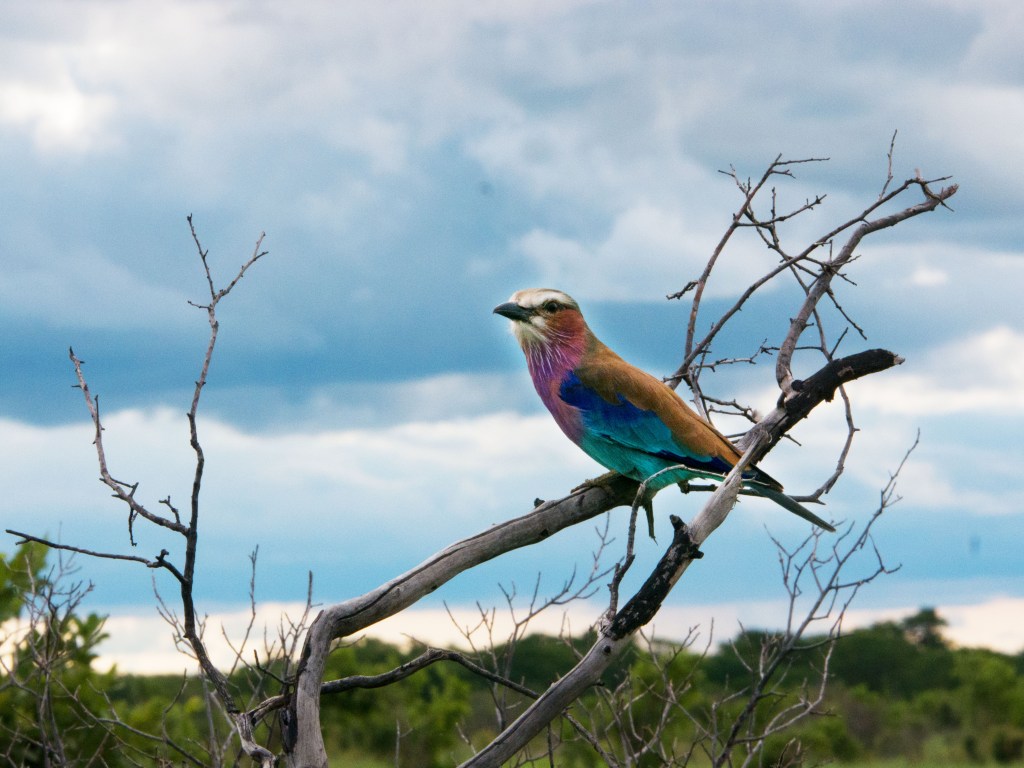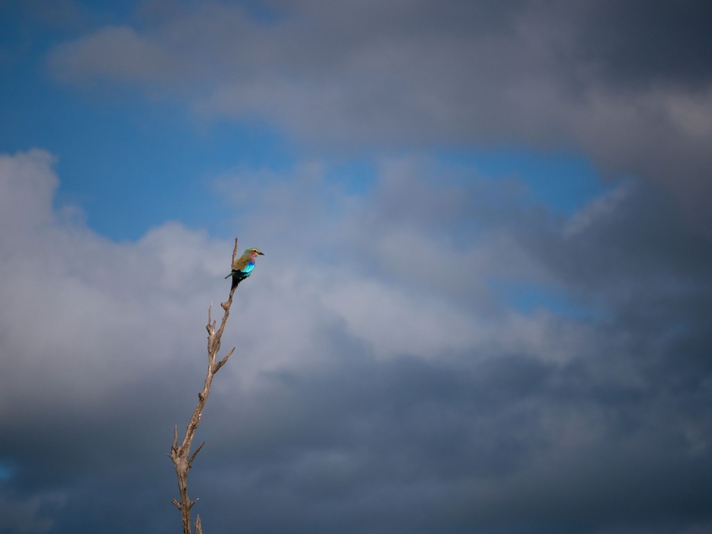 Durant ce game drive, nous croisons pour la première fois un chacal. Nous croisons la route de nombreux oiseaux. Quelques southern yellow-billed hornbill ou « flying banana » (zazou pour Natacha), mais surtout un magnifique lilac-breasted roller.