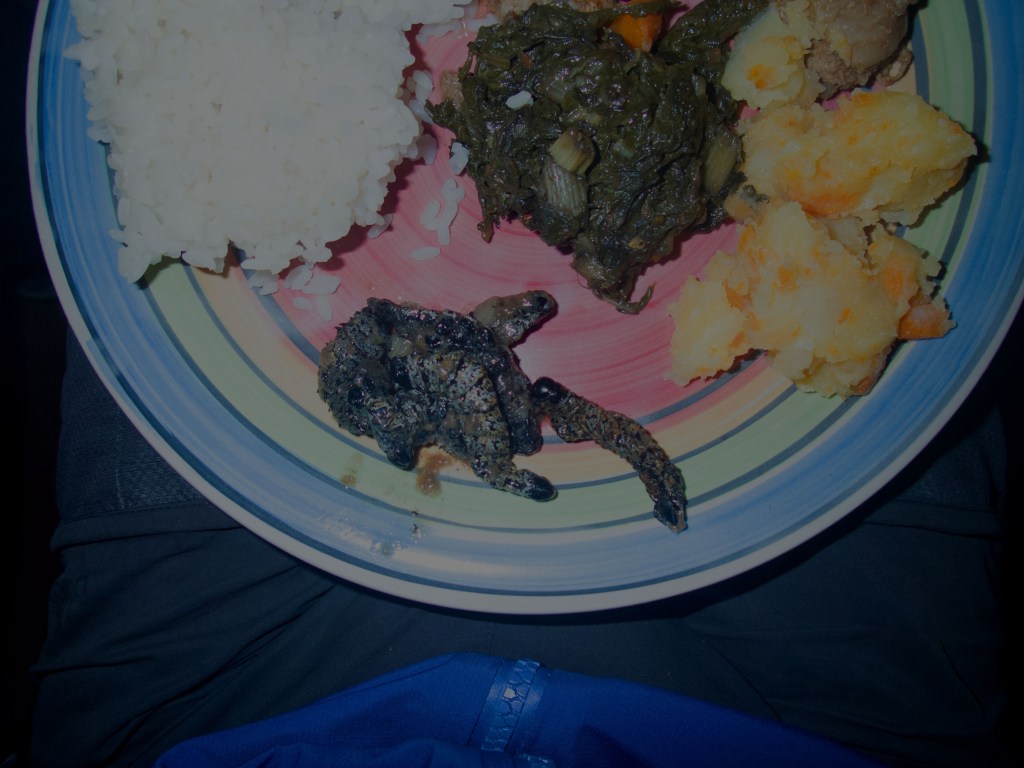 Le spectacle fini, les villageois nous présentent les plats et la surprise, un aliment un peu spécial au menu… les mopane worms, que nous avons les deux testés. Un goût qui ressemble un peu au bœuf mais assez salé et croquant par endroit…