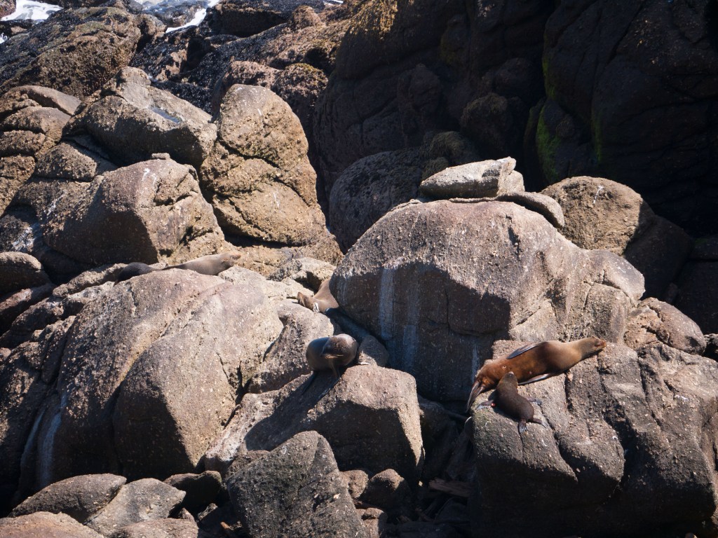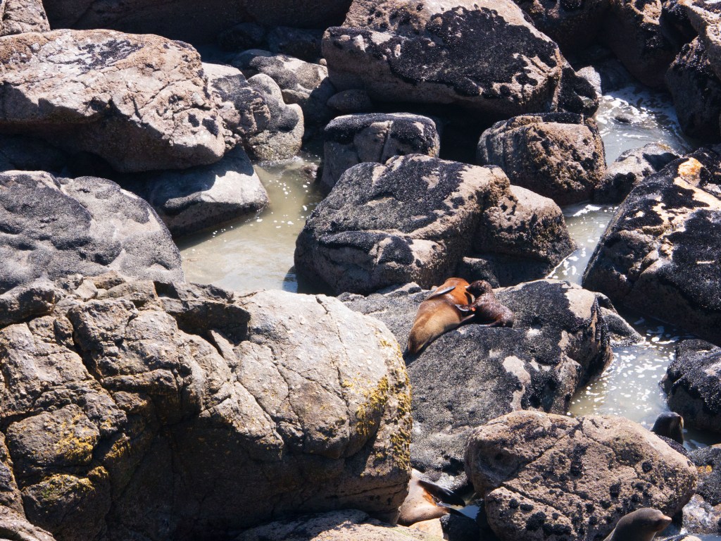 Nous arrivons le long de la côte et là nous voyons un panneau indiquant qu’il y a une colonie d’otaries à fourrure non loin de là. Du coup petit détour afin d’aller voir cette espèce endémique. Certains sont plus actifs que d’autres ^^