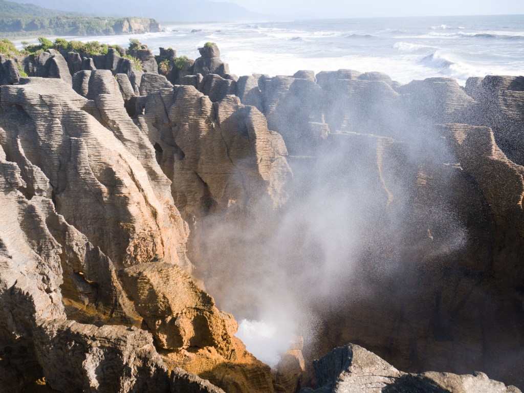 Les Pancakes rocks sont vraiment impressionnants avec les vagues qui viennent se briser sur les rochers. Leur nom vient de l’aspect des rochers qui ressemble à un empilement de blocs fins et horizontaux.