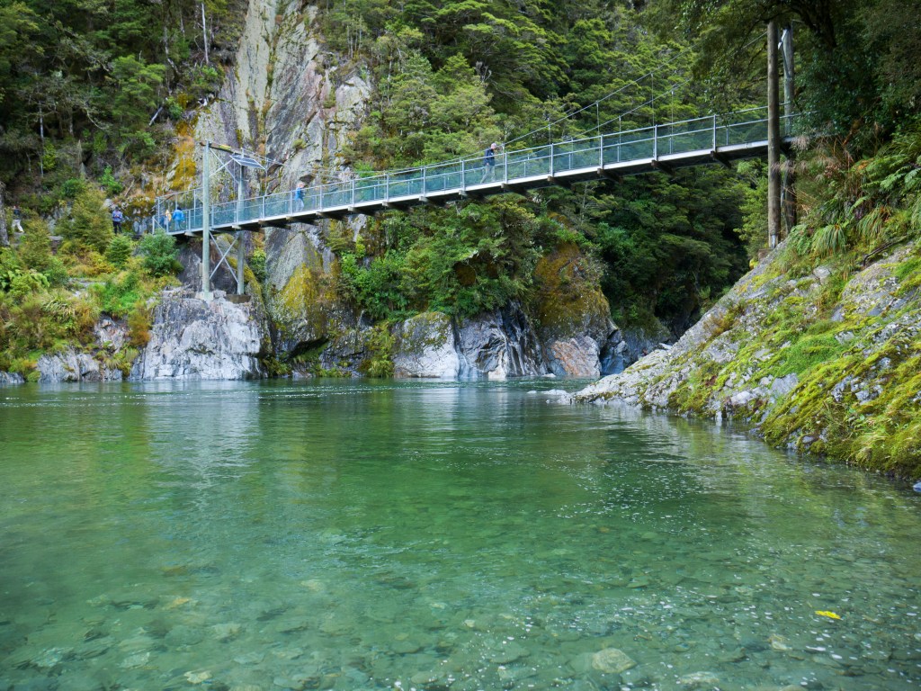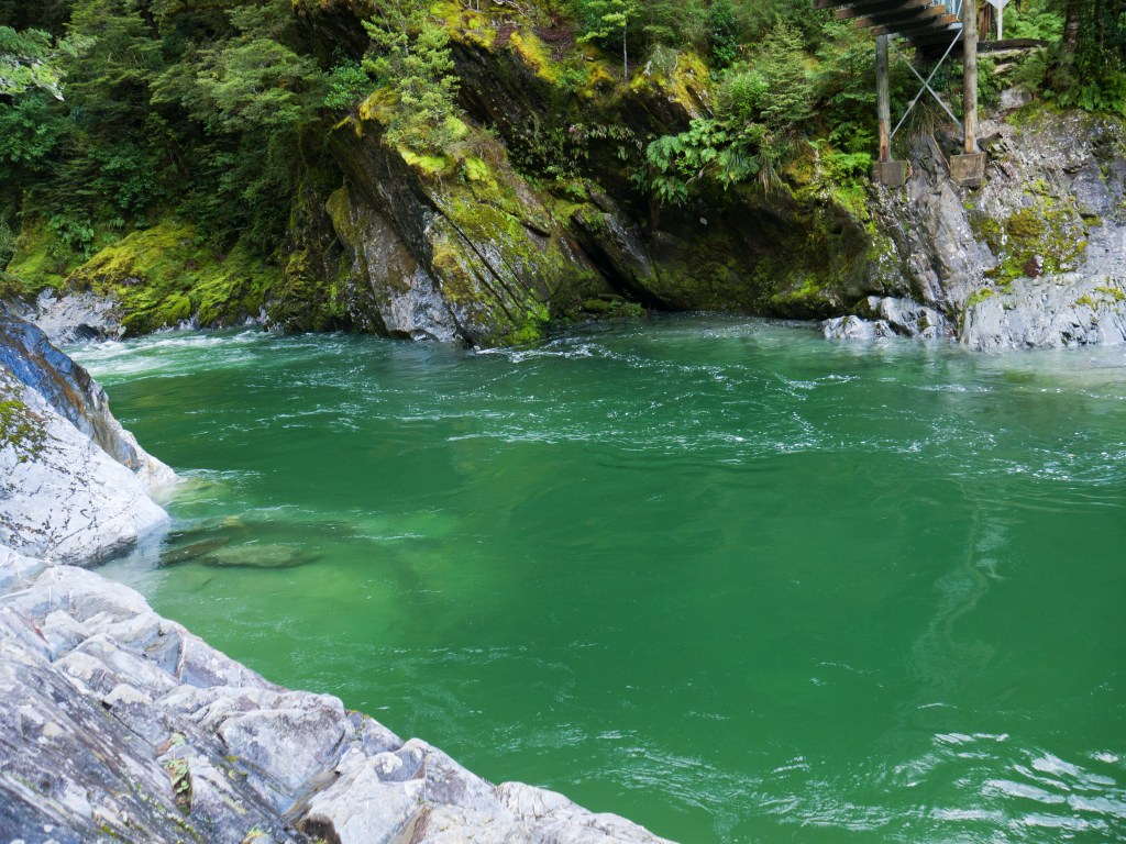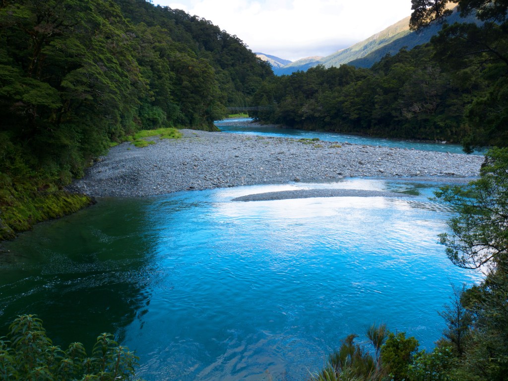 Presque arrivés à Wanaka nous nous arrêtons aux Blue Pools qui n’étaient pas vraiment bleues du au manque de soleil et aux intempéries des jours précédents. Mais le paysage reste magnifique.