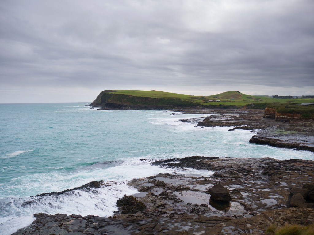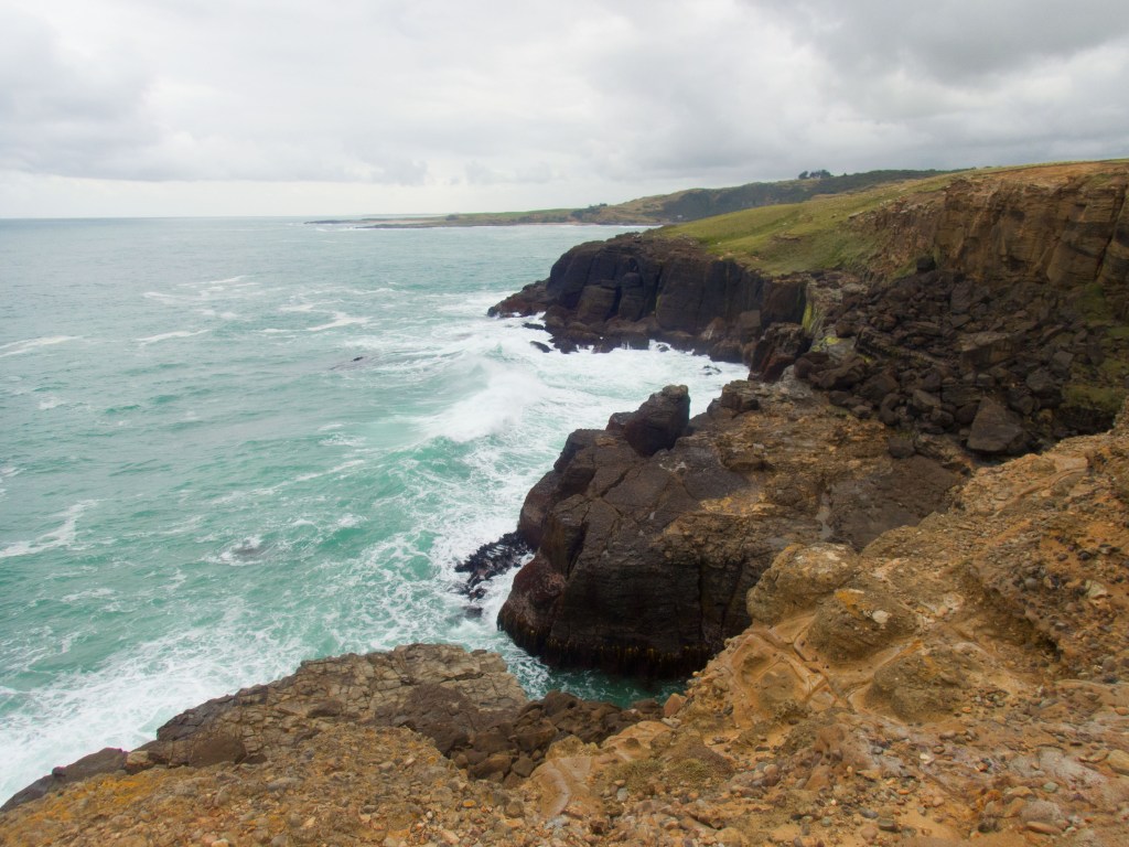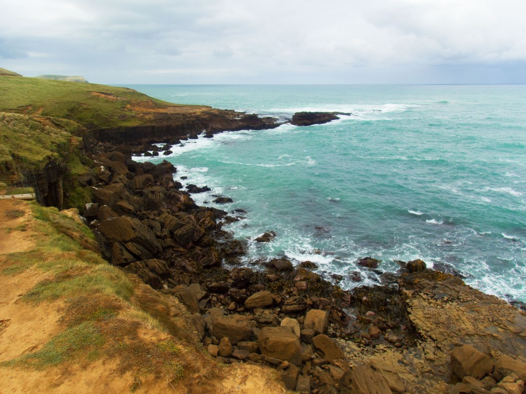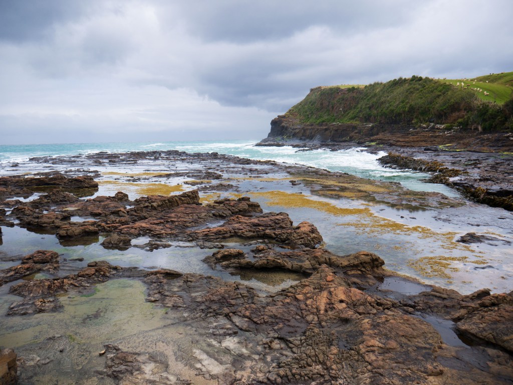 Aujourd’hui nous nous levons aux aurores pour rejoindre la région des Catlins. Nous nous arrêtons tout d’abord à Curio Bay où nous espérons voir des Yellow Penguins. L’endroit est magnifique avec ces falaises à pic, mais malheureusement aucun pingouins à l’horizon.