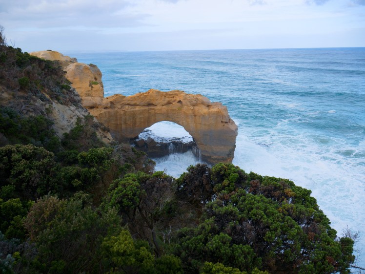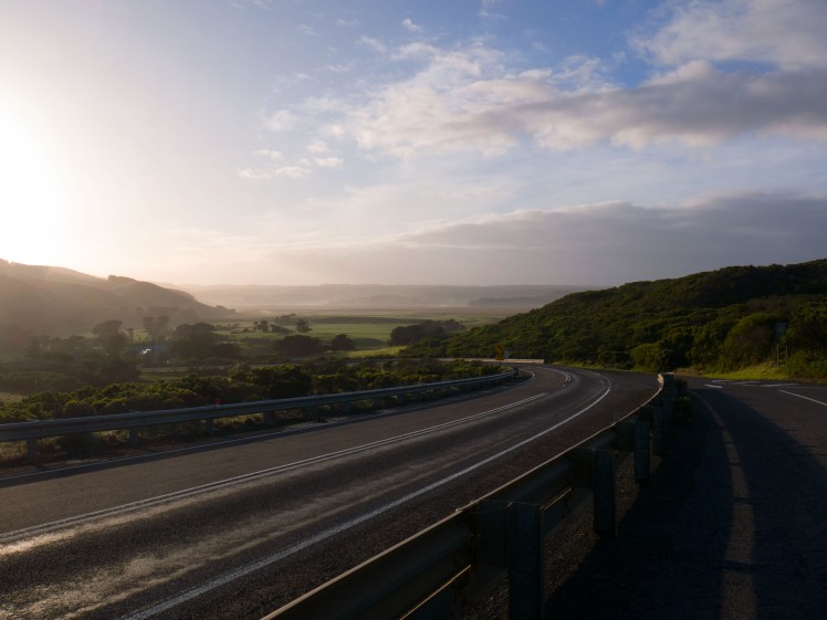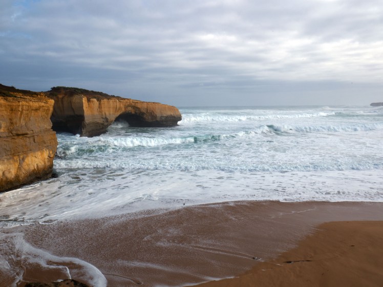 Quelques kilomètres plus loin nous arrivons enfin au début de la « Great Ocean Road ». Au commencement il s’agissait en fait d’un projet visant à créer du travail pour les soldats revenant de la première guerre mondiale. Puis l’état a continué la construction de cette route afin de relier toutes les villes et villages côtiers le long de ces 241 km. C’est ensuite devenu une attraction touristique pour ses belles plages, ses célèbres sites et vues panoramiques.