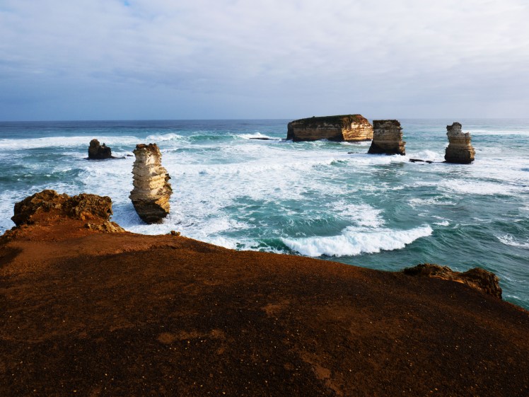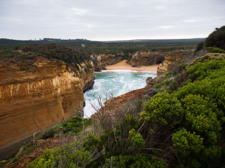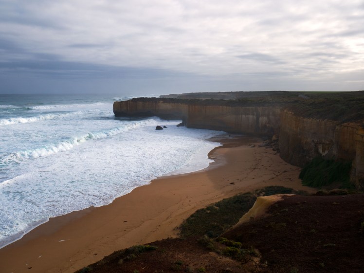 Nous commençons notre longue liste par « Gibson’s Step » qui est un escalier qui permet de rejoindre la plage et d’avoir une vue imprenable sur les « 12 Apôtres » qui culminent tout de même à 45 mètres. Malheureusement dû à des travaux la plage est fermée. Nous apercevons tout de même une petite partie des 12 Apôtres depuis le haut de la falaise.