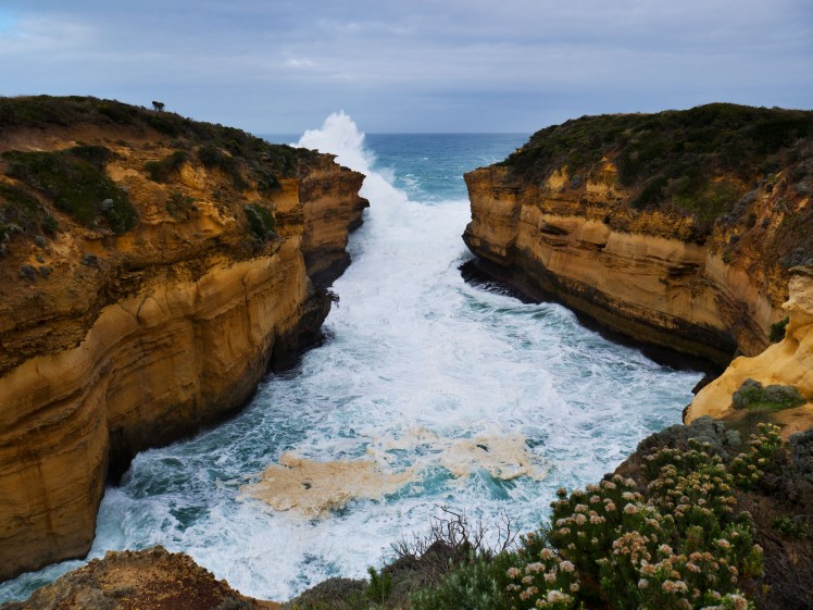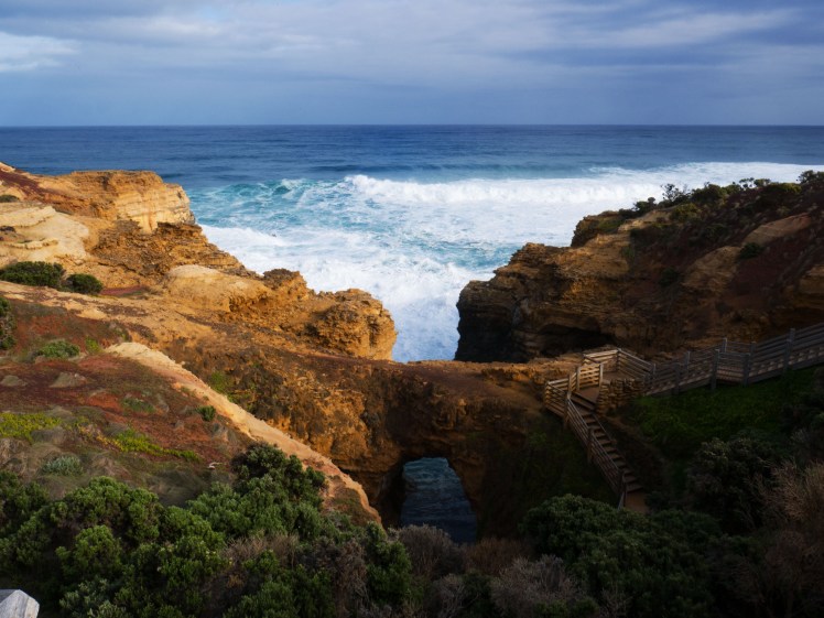 Pas de chance pour nous, dû au coronavirus les autorités ont décidé de fermer tous les points de vue des 12 Apôtres. Nous nous rendons donc non loin de là pour voir Loch Ard Gorge, the Razorback, Tom & Eva lookout, Island Arch, Mutton Bird, Thunder Cave ainsi que Broken Head. L’océan est vraiment agité et des vagues énormes s’écrasent sur les falaises de plus de 40 mètres de haut. Nous avons aussi la surprise d’être absolument seuls la plupart du temps. Depuis le début de la journée, nous n’avons même pas croisé dix personnes, alors que ces sites sont d’habitude surpeuplés.