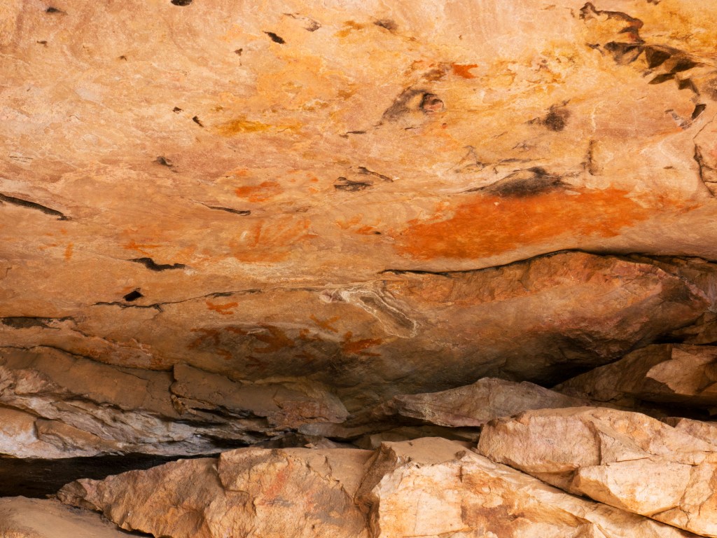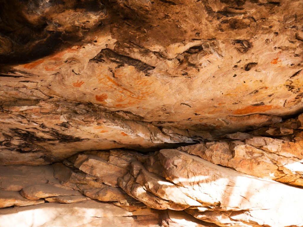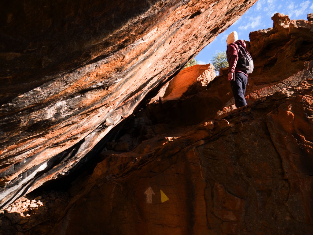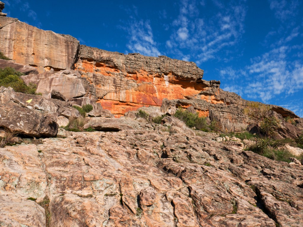 De retour au pied de la montagne, nous découvrons un site aborigène avec des dessins qui datent de plusieurs milliers d’années. Alors que nous sommes sur le point de rejoindre le parking un petit wallaby se tient à l’entrée de celui-ci.