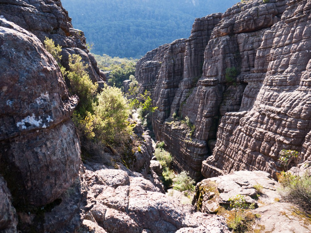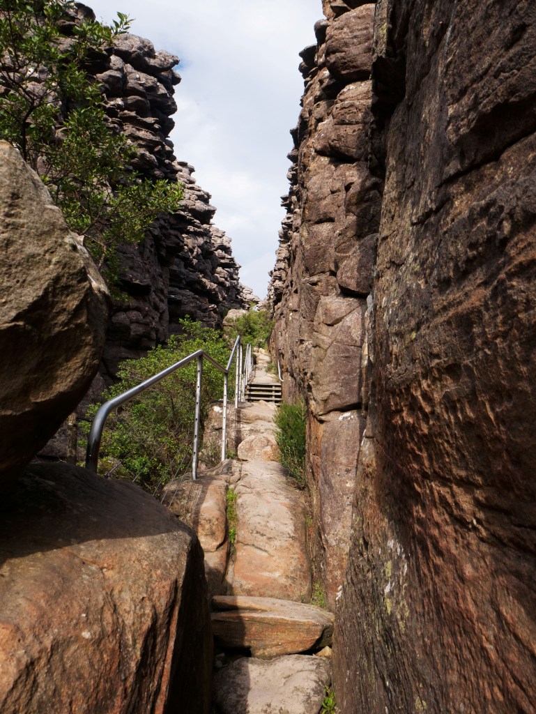 De retour sur notre route scabreuse nous repartons pour Halls Gap afin de débuter une marche qui nous amènera au Pinnacle. La randonnée jusqu’au sommet est magnifique. Nous devons emprunter un splendide chemin exigu et confiné au milieu des rochers.