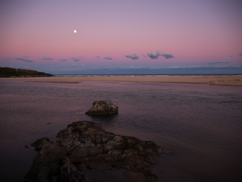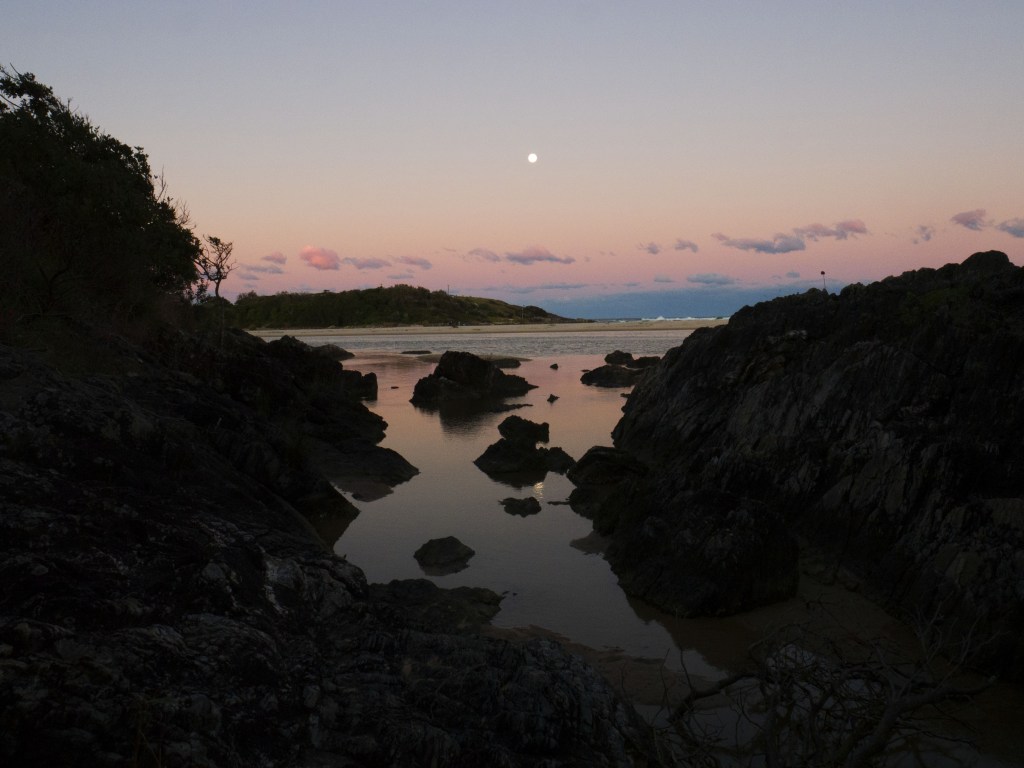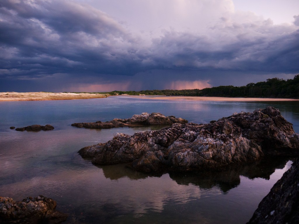 Sortie de prison, nous nous arrêtons à Nambucca Head afin d’y prendre notre second petit-déjeuner et d’y admirer la vue. Arrivés à Sawtell, notre camping, nous avons le droit à un bel orage qui nous offre un coucher de soleil différent de ce dont nous avons eu l’habitude jusqu’à maintenant.