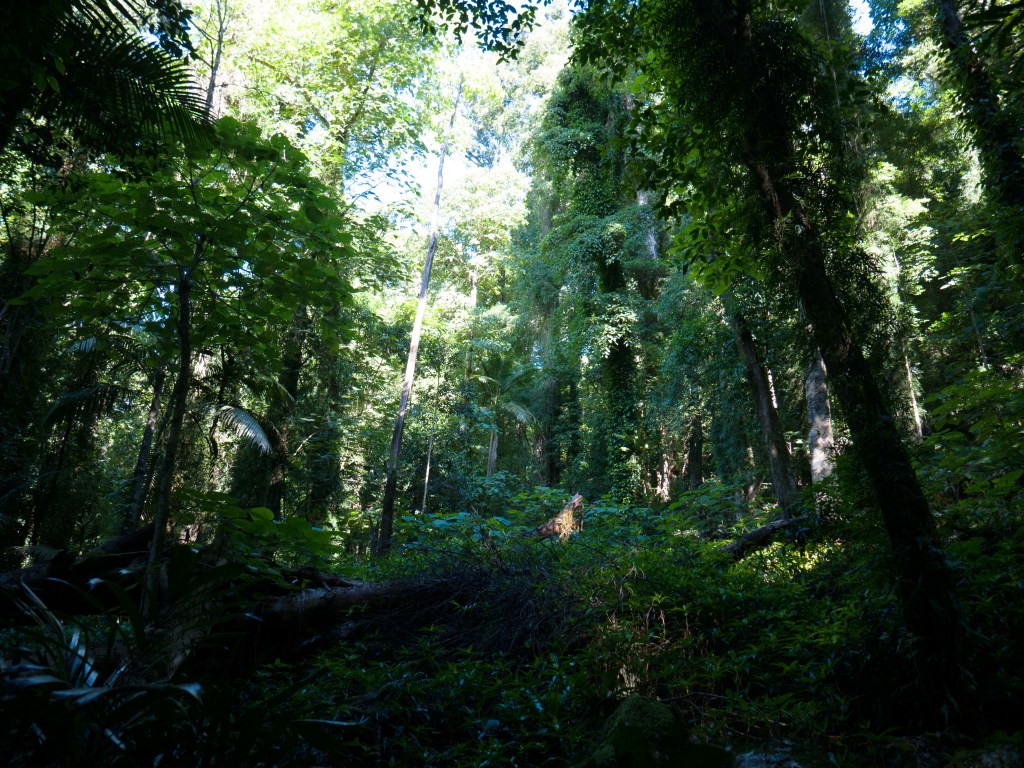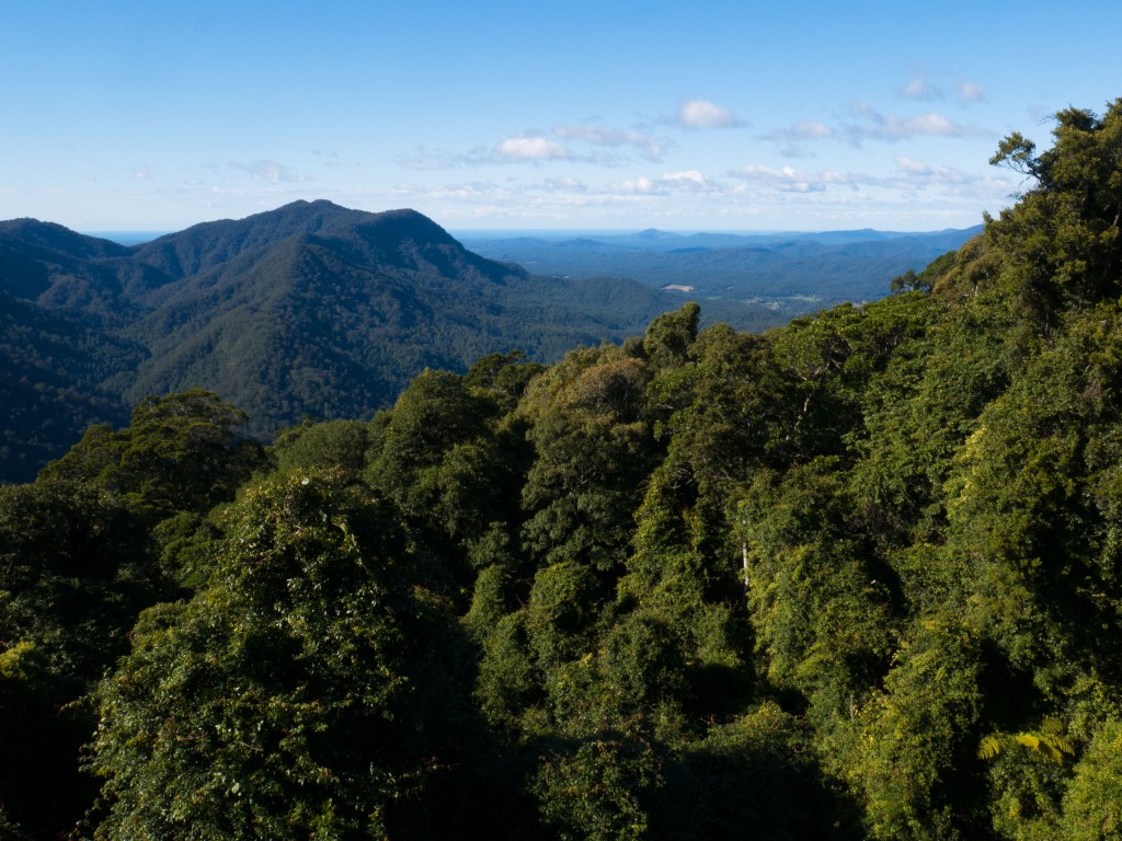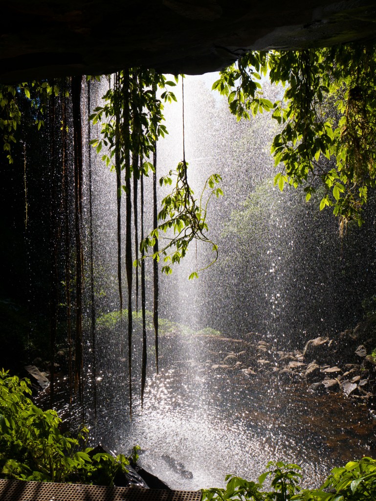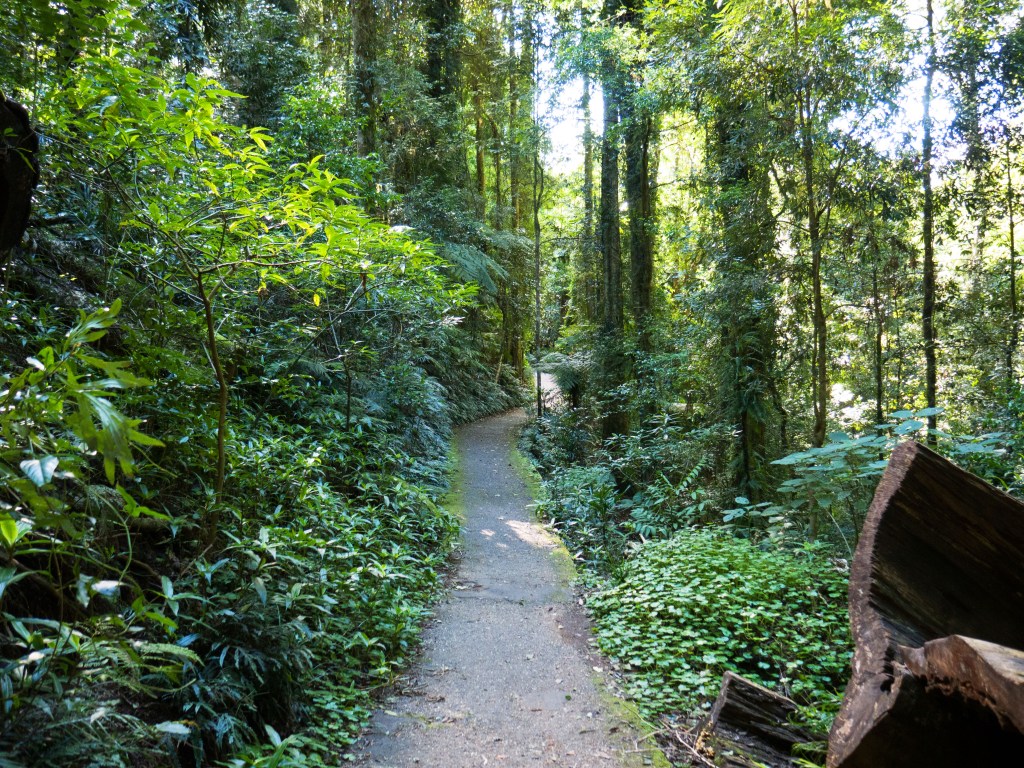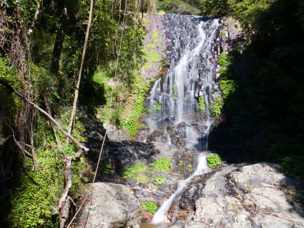 Ce matin Natacha va braver l’impossible ! Marcher dans le parc national de Dorrigo, qui est une forêt tropicale et par conséquent potentiellement infestée de toute sorte de petits animaux à huit pattes. Une petite marche d’environ 5km qui nous amène à deux chutes d’eau mais malheureusement aucun arachnide à l’horizon.