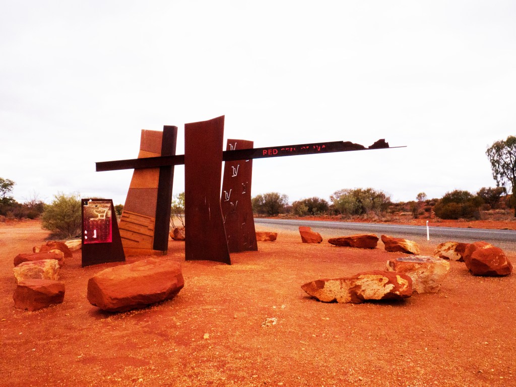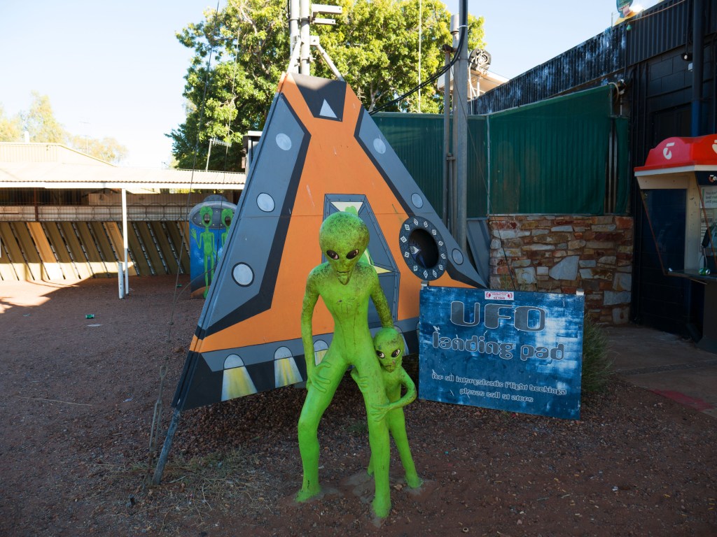 Nous empaquetons tout dans le van après cela et le petit-déjeuner, puis hop sur la route again ^^ Petit trajet aujourd’hui seulement 3h50 de conduite ^^ avant d’arriver à Alice Spring ! Enfin 2 nuits dans un camping avec douche et électricité ^^ Un petit stop à la capitale des OVNI sur le chemin, Wycliffe Well.