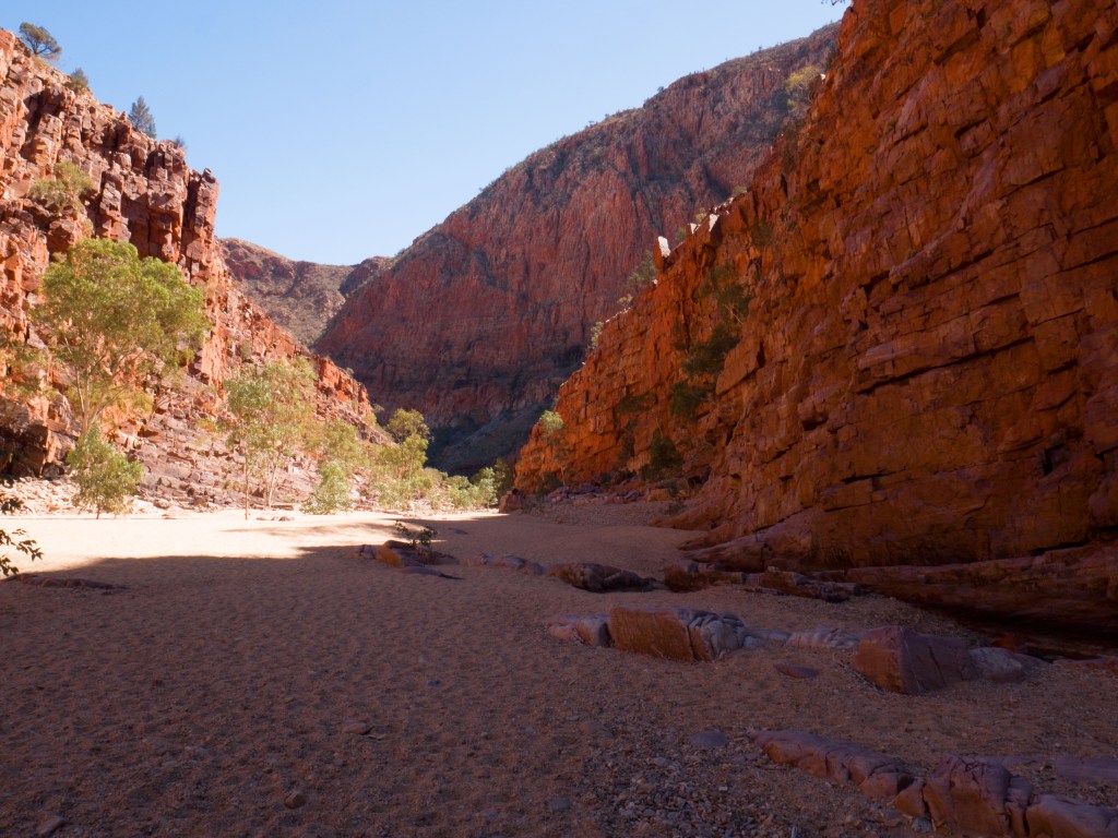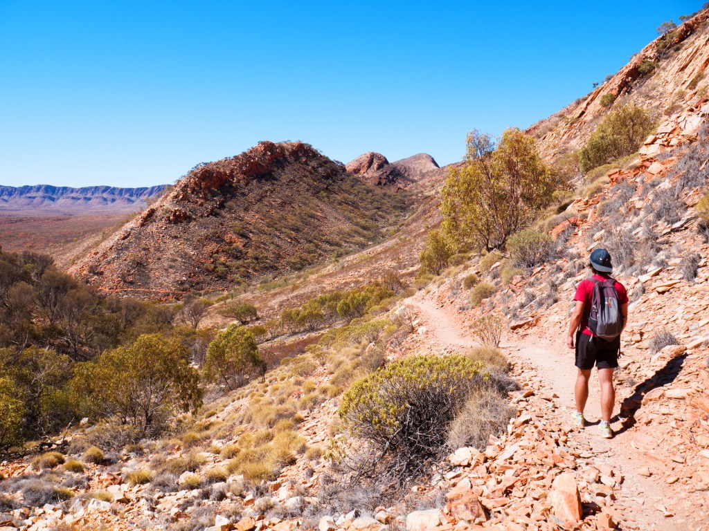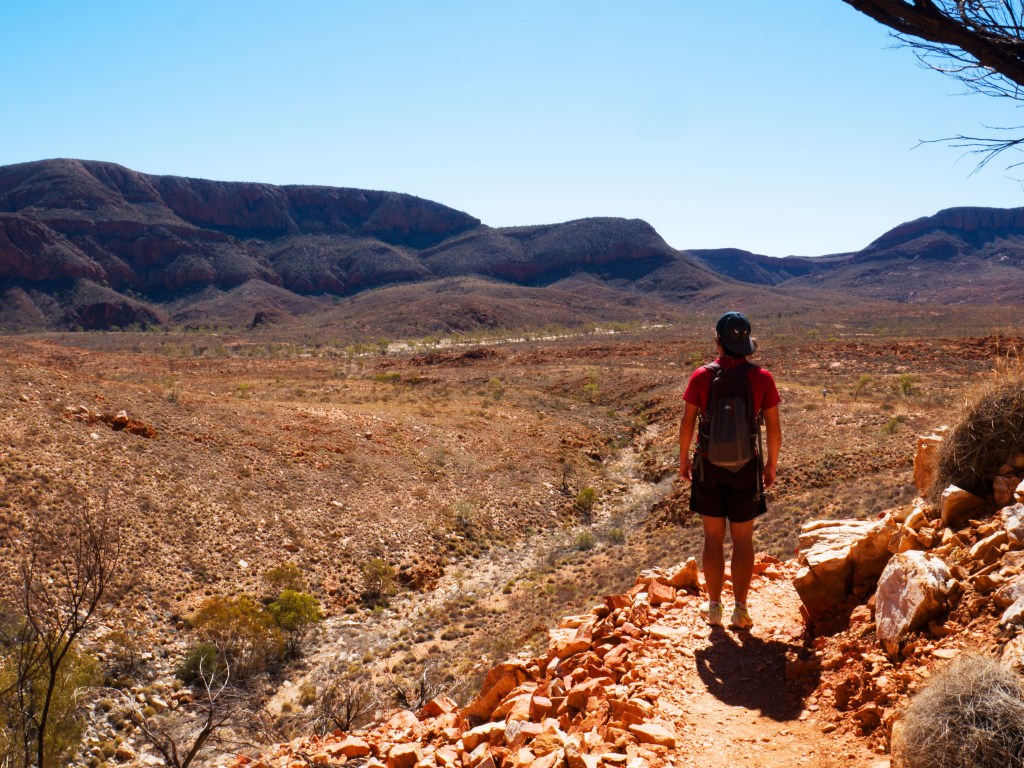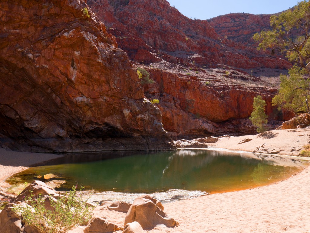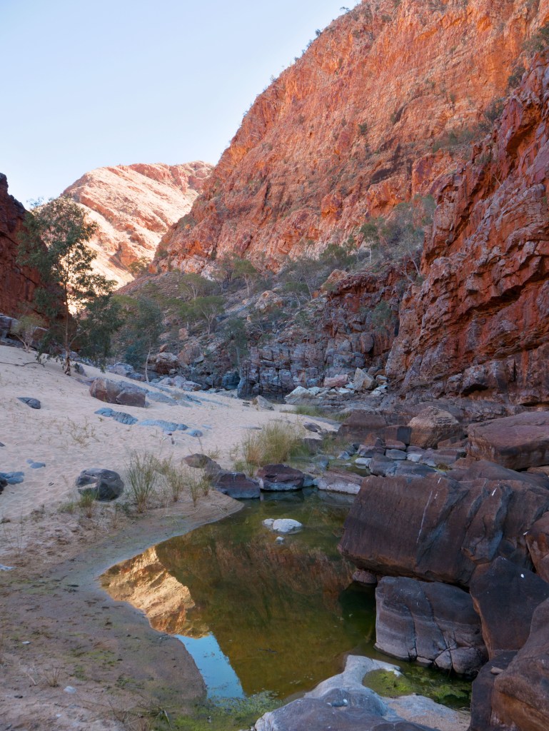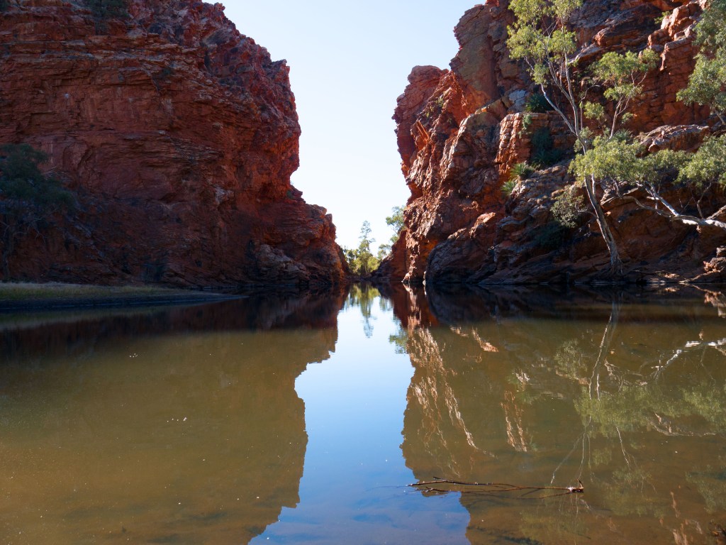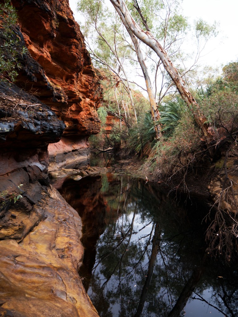 Sur le chemin du retour, nous nous arrêtons encore à un point de vue (moyen) et à Ellery Creek Big Hole, où le point d’eau a nettement plus de charme. Si les mouches n’étaient pas également de la partie, nous serions probablement restés un peu plus longtemps au bord de l’eau. Certaines personnes ont trouvé le bon truc. Elles sont assises sur leurs chaises de camping en train de lire un bouquin et portent un chapeau muni d’une moustiquaire qui entoure la totalité du visage. Au moins ça fonctionne ^^