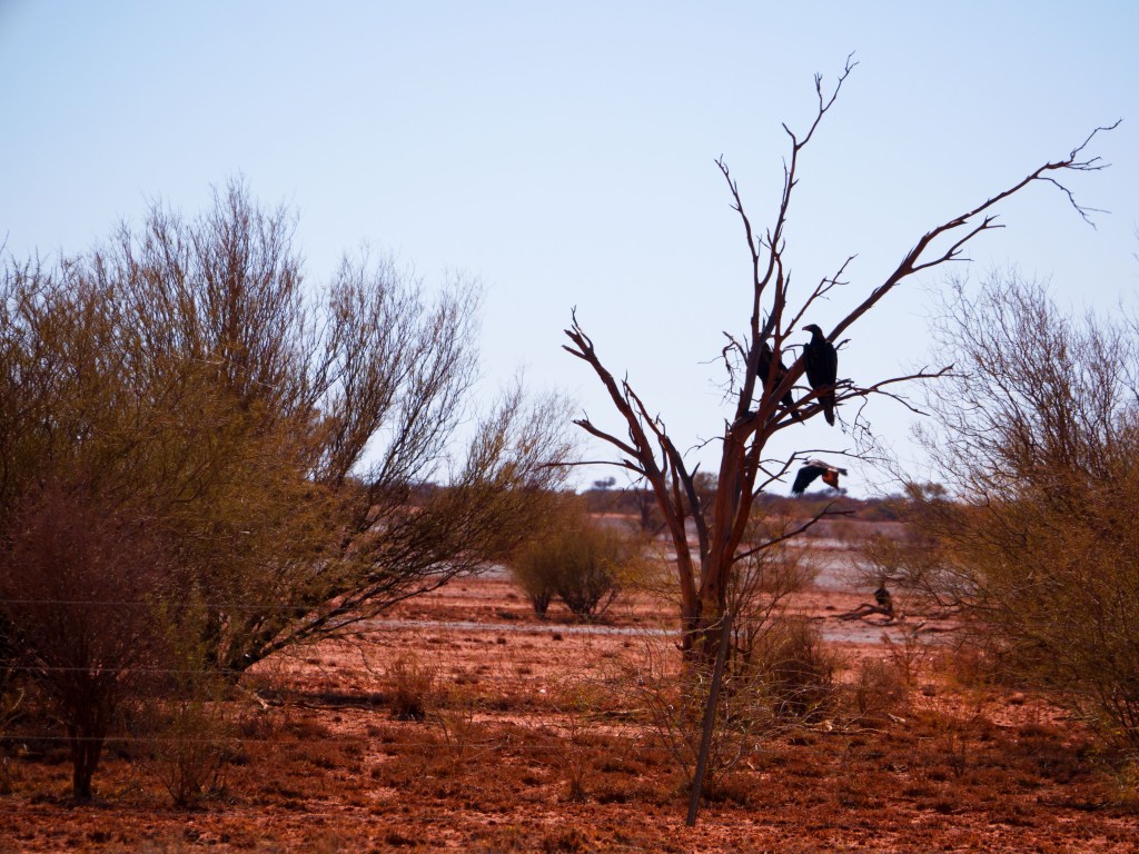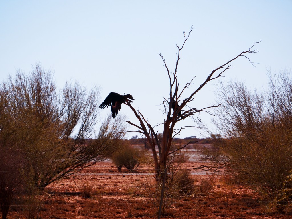 Le lendemain nous partons pour Yulara afin de voir les formations rocheuses Uluru / Ayers Rock ainsi que Kata Tjuta / Mount Olga qui se trouvent dans le parc national Uluru-Kata Tjuta. Nous avons besoin de bien 5h pour y arriver. En route, nous nous arrêtons pour prendre en photo le mont Connor. Il s’agit d’une espèce de montagne à qui on a coupé la pointe. Ça fait bizarre de la voir isolé au milieu de cette plaine. De l’autre côté de la route se trouve un lac qui est actuellement à sec. Nous faisons encore un petit stop pour photographier de magnifiques aigles qui sont perchés sur un arbre en bord de route. Au moins ceux-là, Yann ne les a pas écrasés avec la voiture ^^ pas comme ces jolis petits perroquets verts qui ont laissés quelques plumes sur le devant du van… ça arrive quand on a affaire à des oiseaux kamikazes 😉