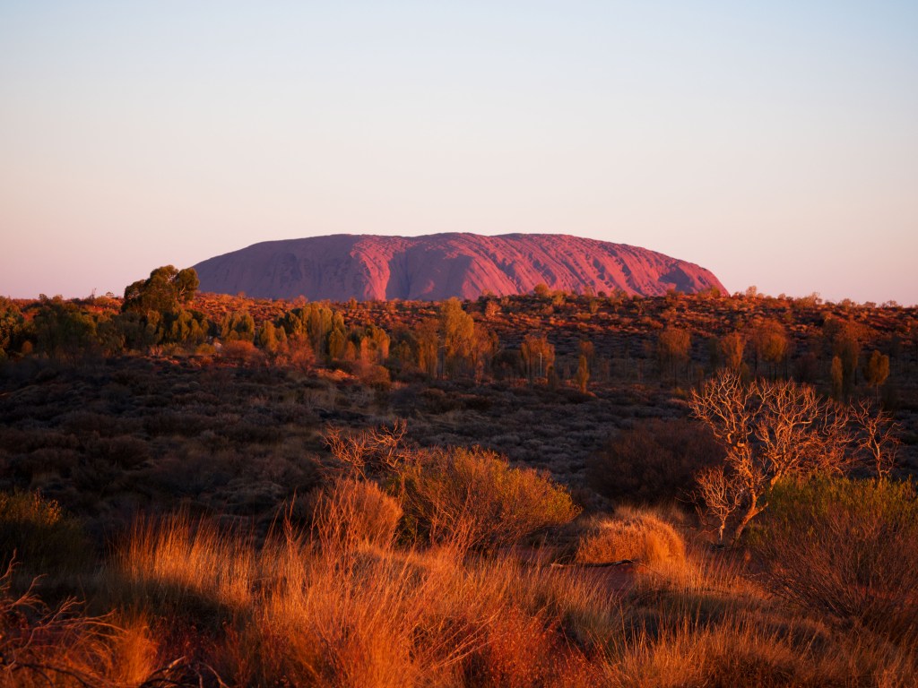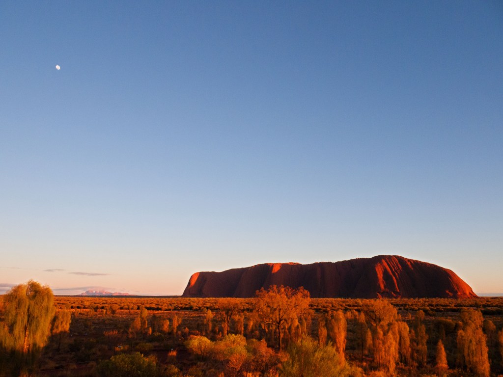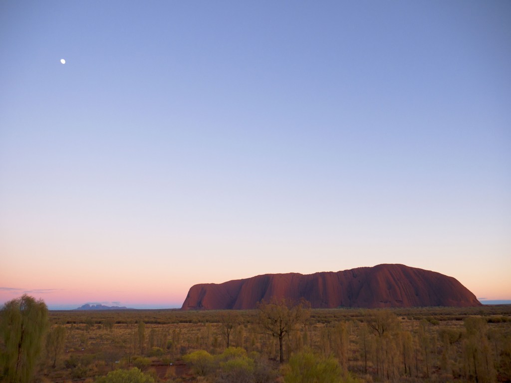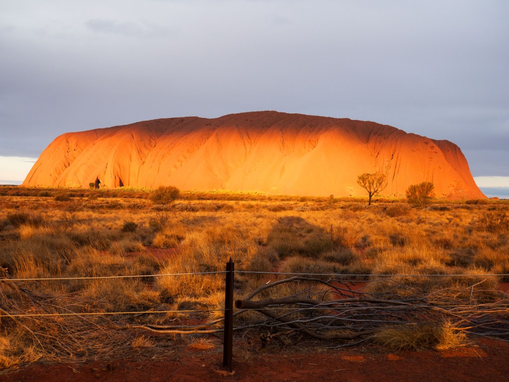 Le lendemain debout très tôt, pour nous rendre à nouveau dans le parc mais pour observer cette fois le lever de soleil. Arrivés les premiers à la plateforme, nous choisissons notre place et patientons. Il reste quelques nuages, mais rien de bien méchant. Le soleil illumine peu à peu le rocher et la région.
