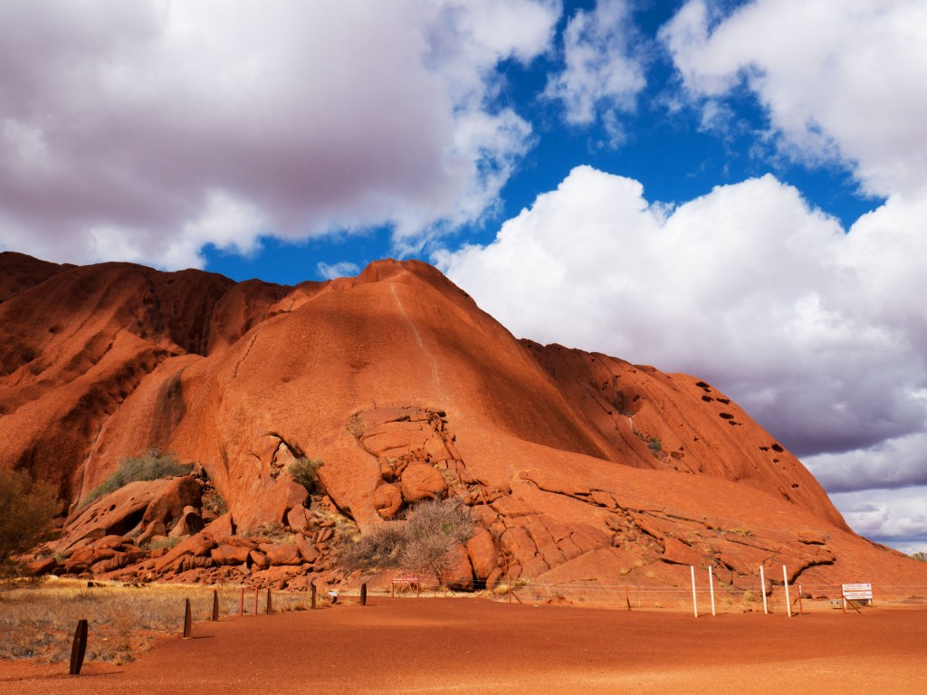 Le lendemain matin nous empaquetons tout dans le van, mais avant de partir nous retournons une dernière fois à la réception pour nous enquérir de la situation. Et là miracle, ils nous annoncent que le peuple aborigène et le gouvernement ont trouvé un accord et que le parc va rouvrir à midi !!! Yeahh ! Bon, après petit discussion entre nous, nous décidons de prolonger à nouveau notre réservation d’une nuit. Pour tuer le temps en attendant l’ouverture du parc, direction le café et la boutique souvenirs du village. On se réjouit et nous ne sommes pas les seuls 🙂 Petit snack au van pour le repas et c’est parti ! Midi nous attendons à l’entrée du parc, comme la majorité des gens qui ont également patienté… du coup fil d’attente… ça va long… mais finalement nous y sommes !
