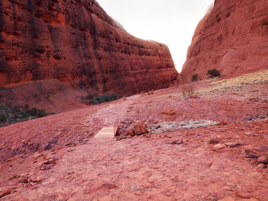 Ensuite nous nous rendons vers le site qui se trouve 50 km plus loin et toujours dans le parc : Kata Tjuta. Egalement une formation atypique de la région. Là nous décidons de marcher dans les Walpa Gorges et d’aller jusqu’au premier point de vue dans la Valley of the Winds. Malheureusement pas la temps de tout faire, il faut choisir. Comme son nom l’indique la région est très venteuse et du coup on se les caille.