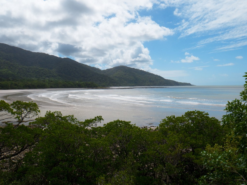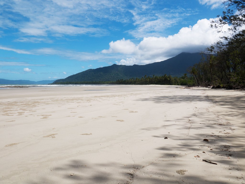 Sinon nous nous renseignons un peu sur nos options au niveau plongée dans la région et décidons après longues réflexions de réserver une sortie de 3 jours, 2 nuits sur la Grande Barrière de Corail avec Pro Dive Cairns. Ce sera l’occasion de passer notre brevet Advanced Open Water. Mais avant cela nous partons passer quelques jours plus au nord à Cape Tribulation. Le 31 nous quittons notre camping à Cairns un peu à l’arrache… Nous pensions avoir encore une nuit à passer ici mais le temps file tellement vite. Du coup nous sommes à la recherche d’un endroit pour la nuit alors que nous roulons vers le nord. Nous nous arrêtons à Wonga Beach et, par chance et bien que « no vacancy » soit noté à l’entrée de la réception, ils ont une place pour nous pour la nuit 🙂 Quelqu’un qui ne s’est pas présenté. Ça vaut le coup de demander parfois. Le camping est situé juste à côté de la plage. Nous pouvons donc entendre le bruit des vagues qui viennent s’y écraser. Petit camping mais très nature et calme. Parfait pour une nuit.