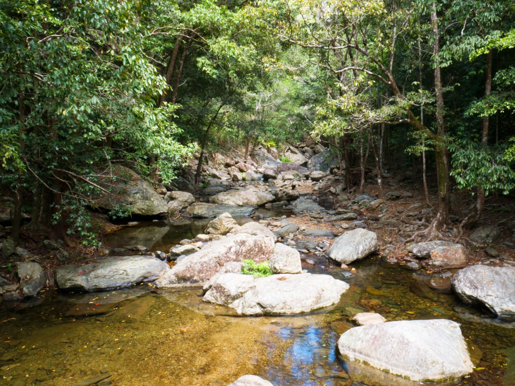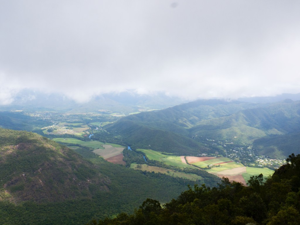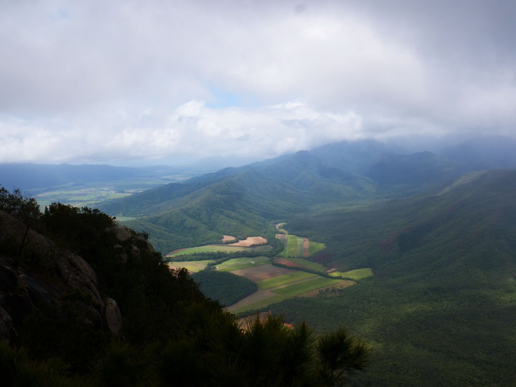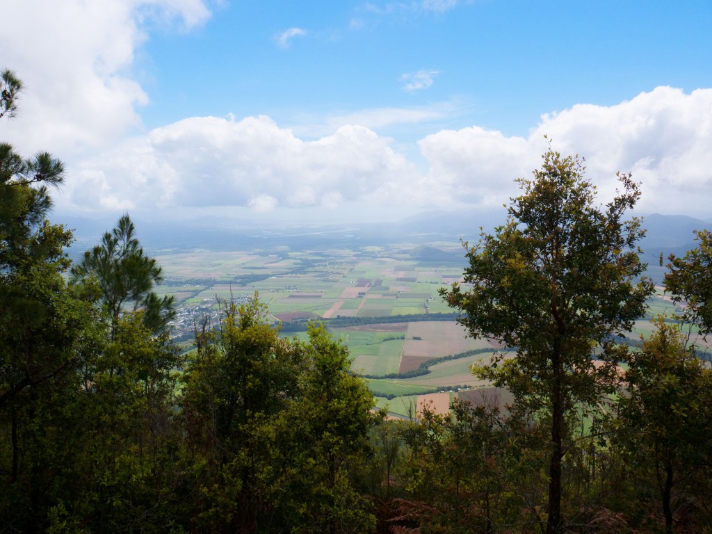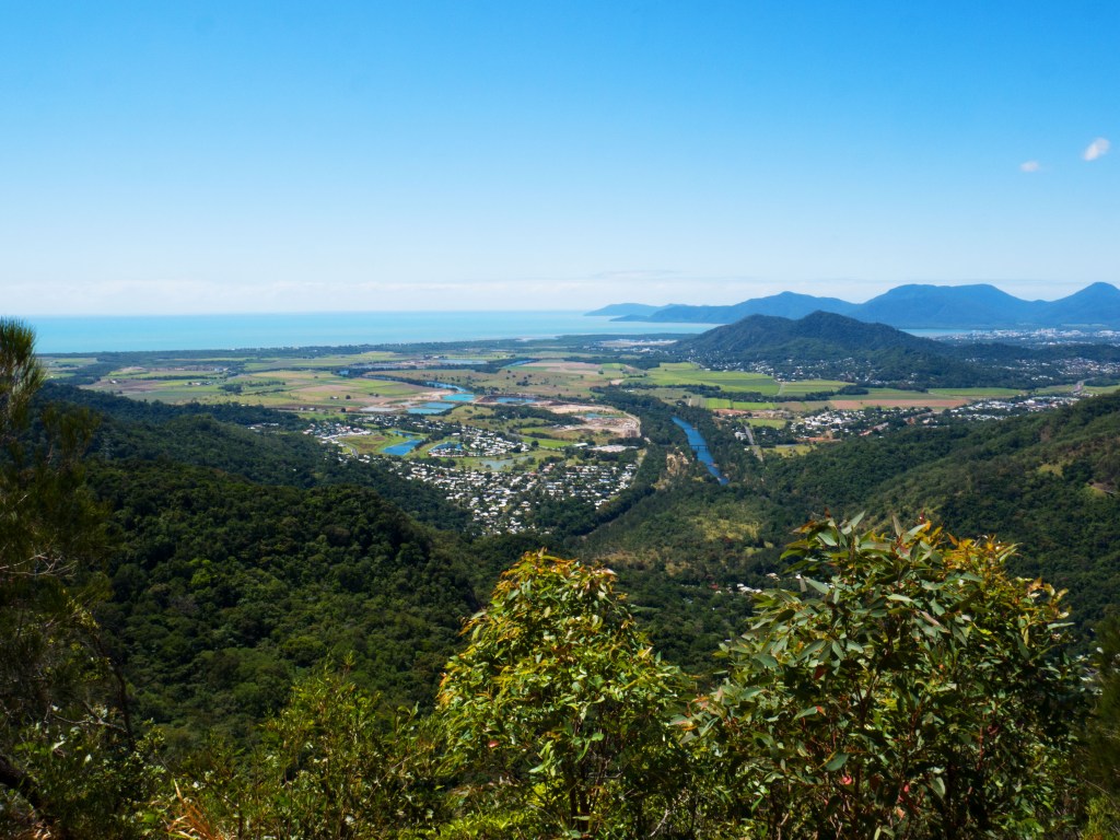 Un autre jour, une de nos escapades nous emmène marcher dans le parc national des Gorges de Barron. Le soleil tape pas mal ce jour-là et nous sommes contents de constater qu’une grande partie du sentier est à l’ombre. Les quelques 7 km aller-retour grimpent pas mal pour rejoindre le point de vue nommé Glacier Rock Lookout. Depuis là, nous avons une magnifique vue sur le ville de Cairns et l’océan. Un couple arrivés avant nous nous conseillent même d’aller sur la corniche un peu en contre-bas. Effectivement la vue y est bien meilleure, même s’il faut faire un peu attention de ne pas dégringoler en bas de la falaise.