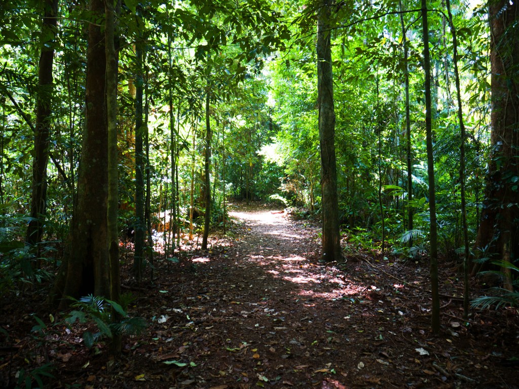 Après cette petite pause, nous nous dirigeons vers la forêt tropicale pour une petite marche et découvrir de nouvelles chutes. Alors que nous roulons, nous croisons littéralement au bord de la route, un cassowary !!! Notre premier ! Sa robe d’un noir de jais et sa crête d’un vif bleu et rouge le rendent presque effrayant. Malheureusement en roulant à 100 km/h, difficile de s’arrêter pour prendre une photo. Nous faisons demi-tour dès que possible avec l’appareil prêt à mitrailler, mais il est déjà loin. Tans pis, ce sera pour une prochaine fois…