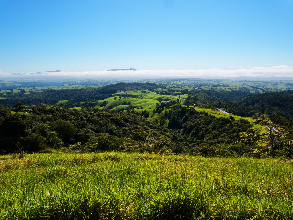 Le moins que l’on puisse dire est que la région ressemble fortement à la Suisse ^^ Champs et vaches sur un paysage vallonné et vert, mais le tout avec une forêt tropicale ça et là. Le contraste est assez surprenant. Nous nous arrêtons tout d’abord à Millaa Millaa, pour visiter les chutes du coin et il y en a pas mal. Nous découvrons donc Millaa Millaa falls, Zillie falls, Ellinjaa falls ainsi que Mungalli falls avant de nous rendre dans la ferme de Mungalli Creek Diary pour y déguster leurs fromages et prendre un café. Situé en haut d’une petite colline, nous avons une vue imprenable sur les alentours.