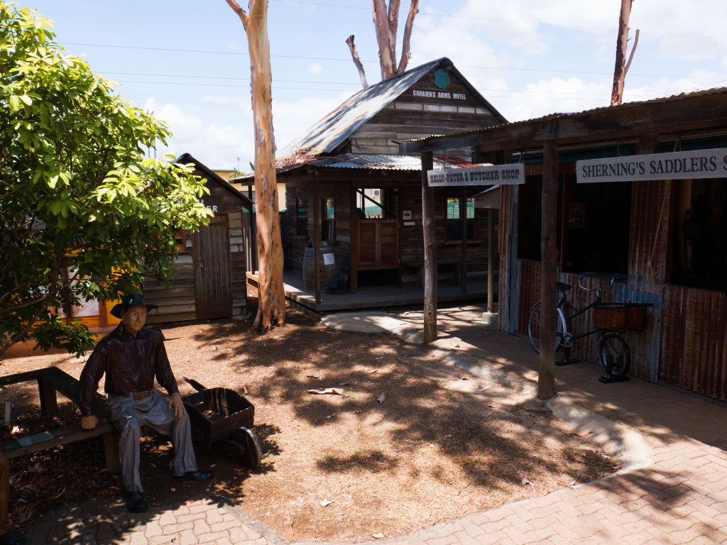 Le jour d’après, nous nous rendons cette fois à Heberton pour découvrir leur village historique. Ils ont réussi à garder un village entier datant des années 1800 environ, l’époque des premiers colons en Australie. On y trouve vraiment de tout, la maison du pharmacien, le mécanicien, l’école, la banque et bien sûr le pub. Intéressant d’apprendre comment les gens vivaient en ces temps-là. Ensuite nous en apprenons un peu plus également sur l’histoire des mines au musée des mines. Comment ça fonctionne, quels minerais sont exploités et pour quelles utilisations.