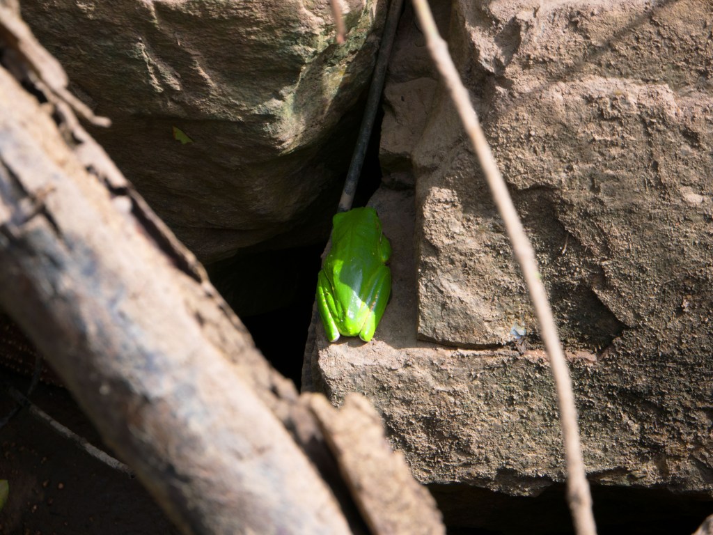 Nous apercevons (grâce à notre guide bien sûr^^) dans les arbres un serpent (tree snake) ainsi qu’un lézard et la fameuse grenouille verte. Ces animaux sont bien camouflés.