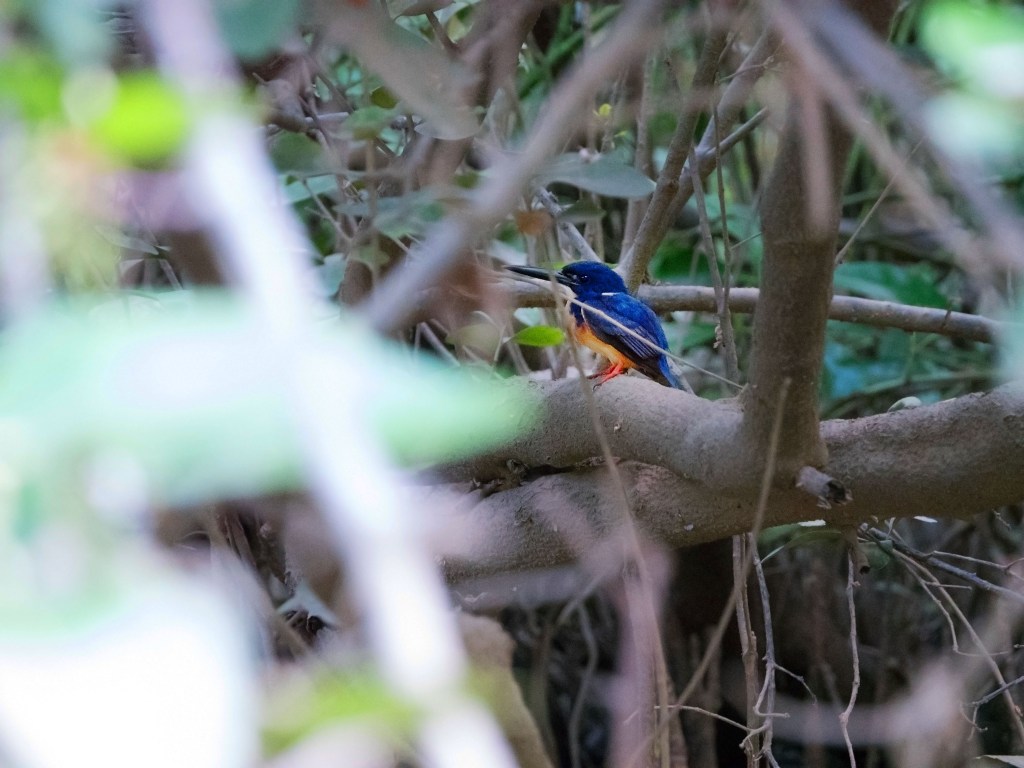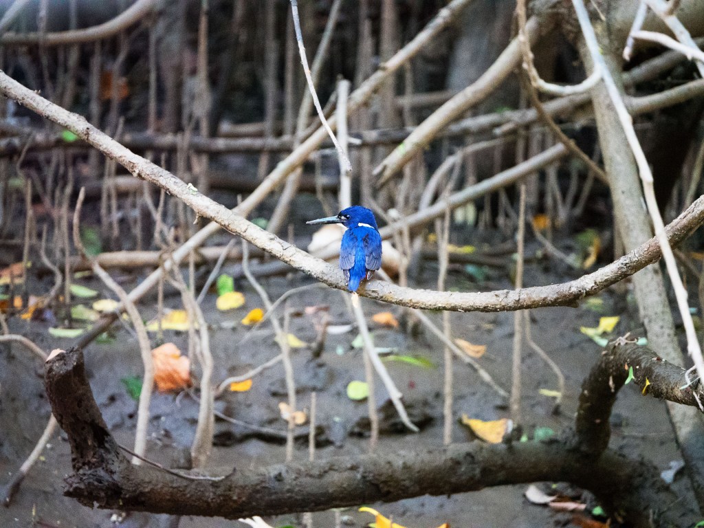 Après ces quelques jours dans la région du Tableland, nous continuons au nord direction Daintree Village, qui se situe au bord de la rivière du même nom. Dès notre arrivée, nous embarquons pour une croisière découverte de 2 heures. Notre but ultime est de pouvoir enfin apercevoir le fameux azure kingfisher et de pouvoir le prendre en photo… et enfin nous le rencontrons ! Celui-ci est assez jeune donc pas aussi coloré qu’un adulte, mais nous sommes déjà au paradis.