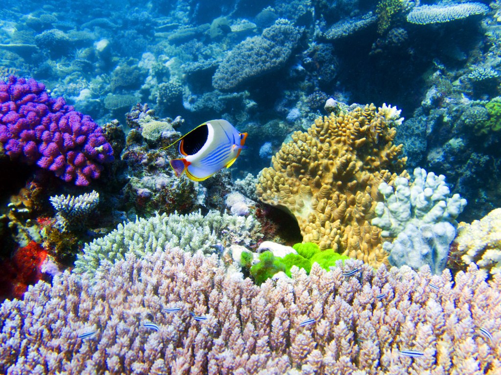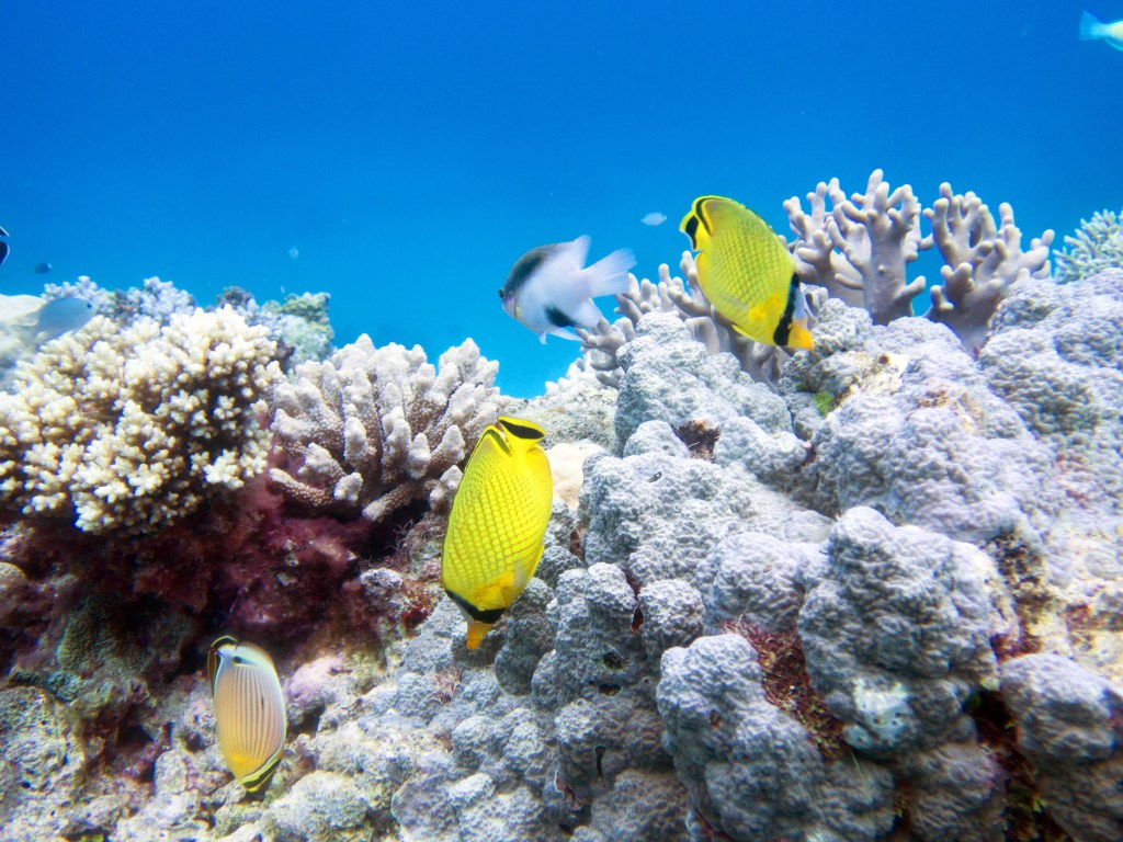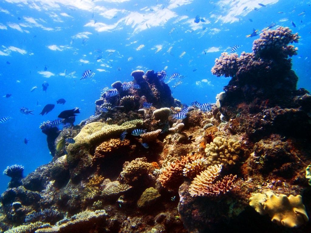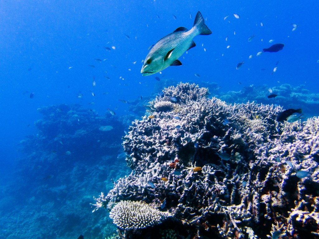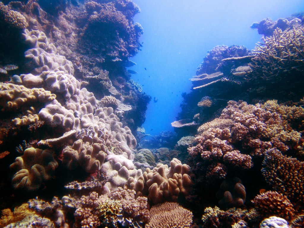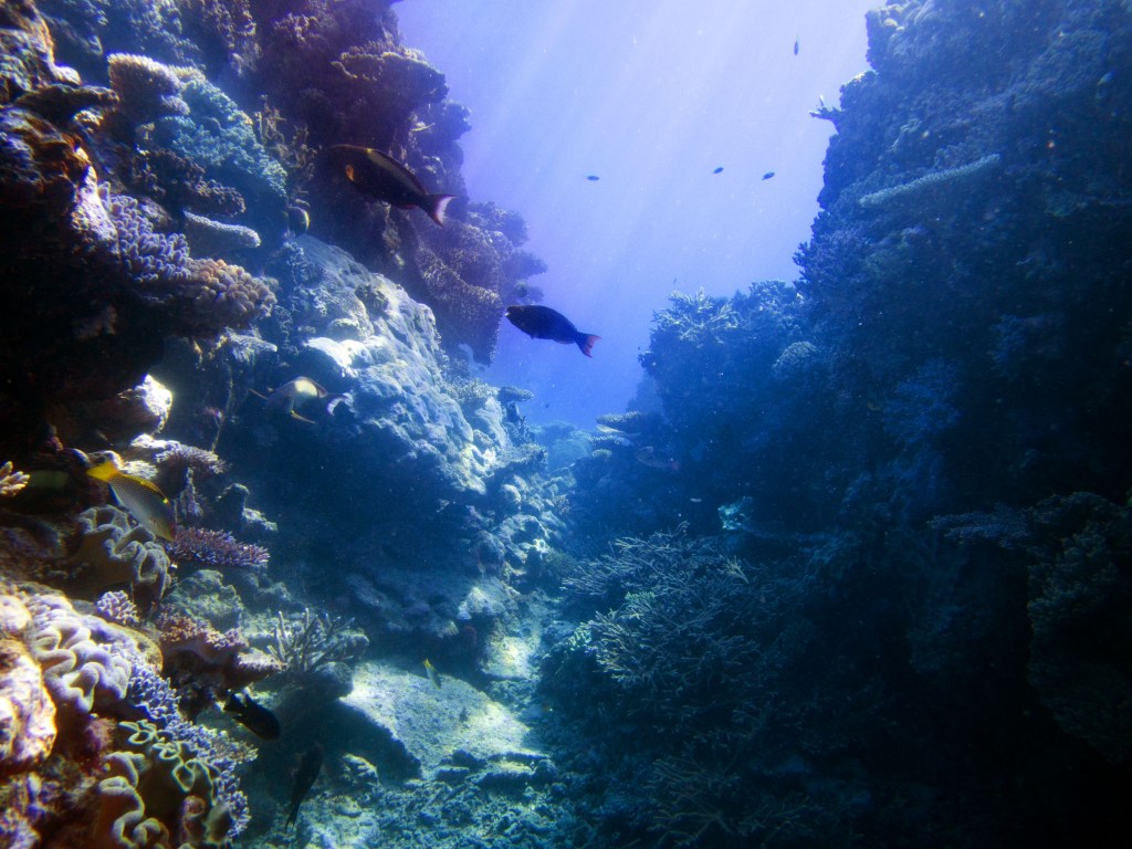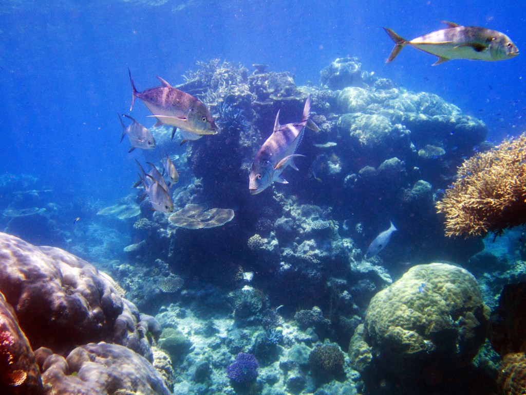 Pour notre première plongée, nous retournons au même endroit que la dernière fois qui se nomme Petaj sur le récif Milln. Depuis le bateau, l’eau semble être translucide. Nous n’avons qu’une hâte, c’est d’y aller. Briefing, préparation et une fois les derniers contrôles faits, hop à l’eau.