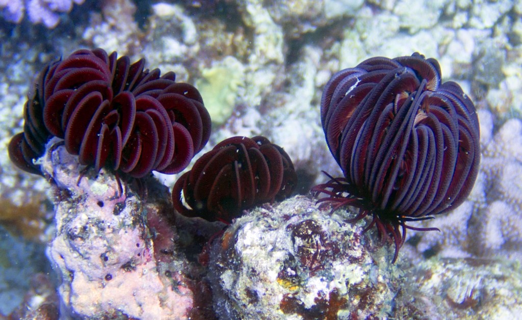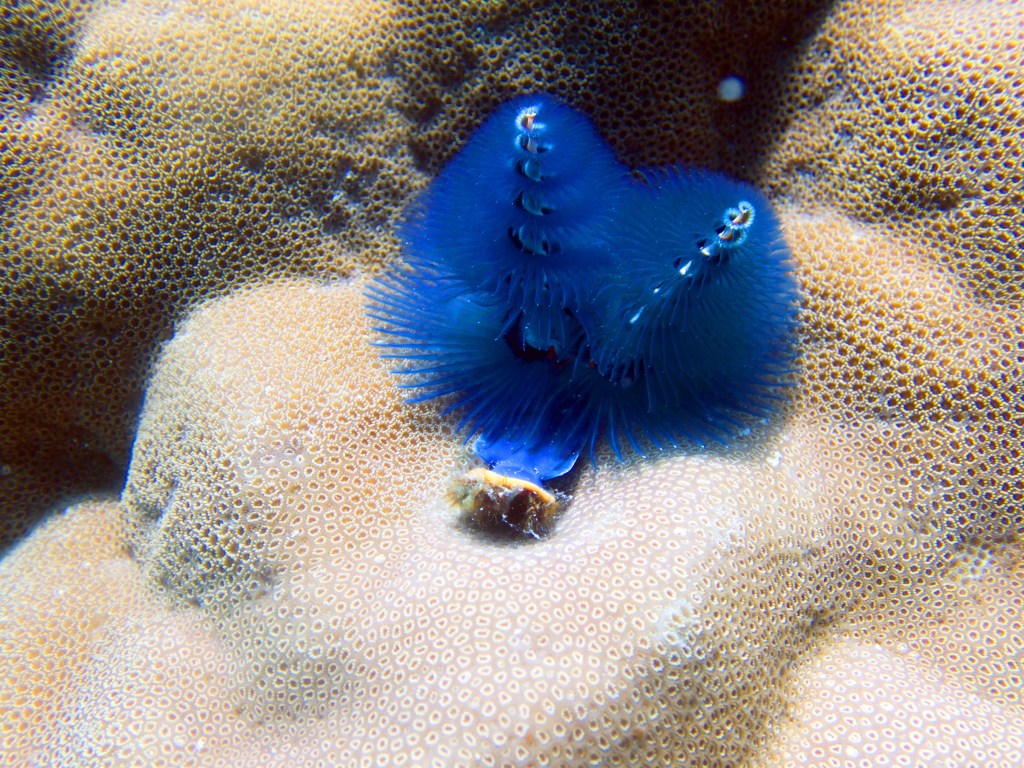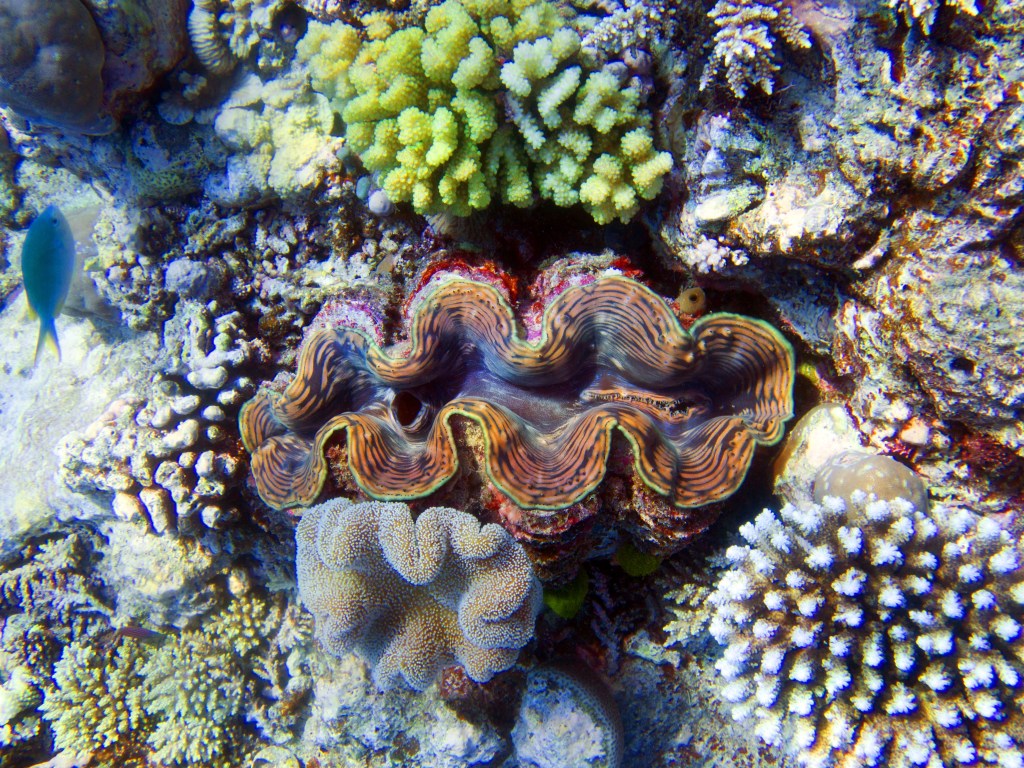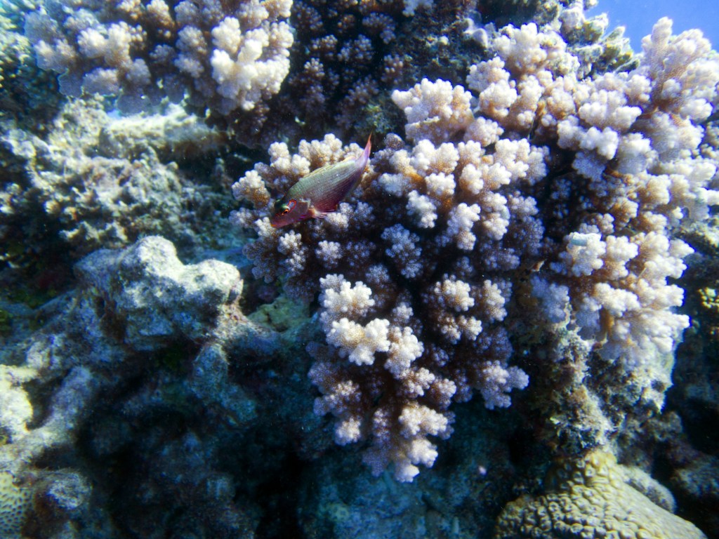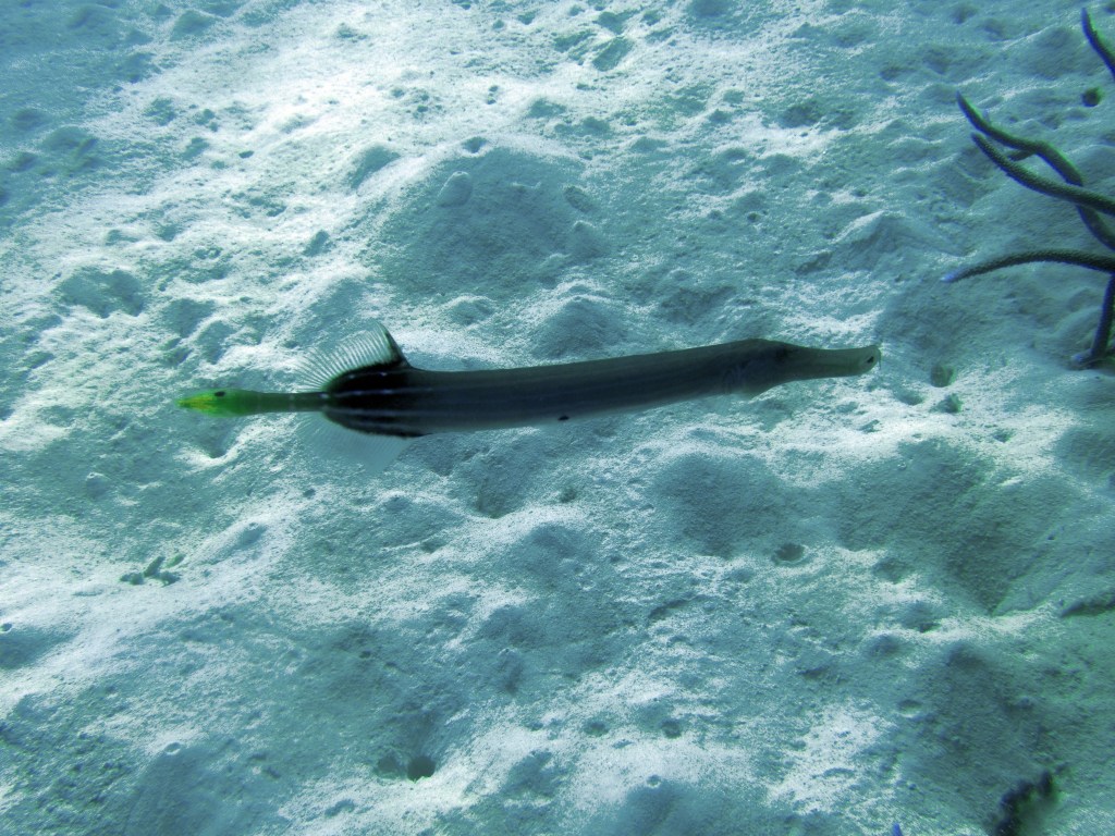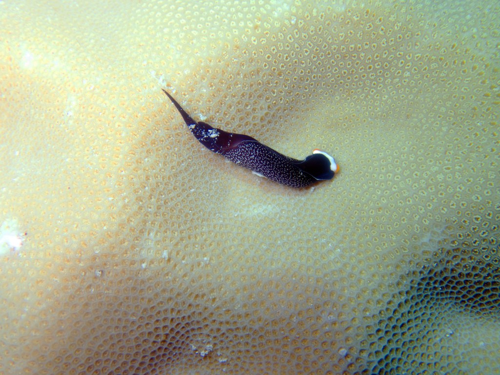 Nous croisons un trompettefish, quelques jolies clam, un mini blennie caché dans son trou et quelques autres poissons multicolores.