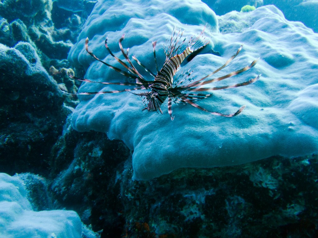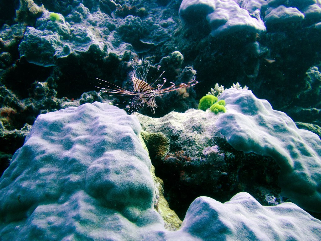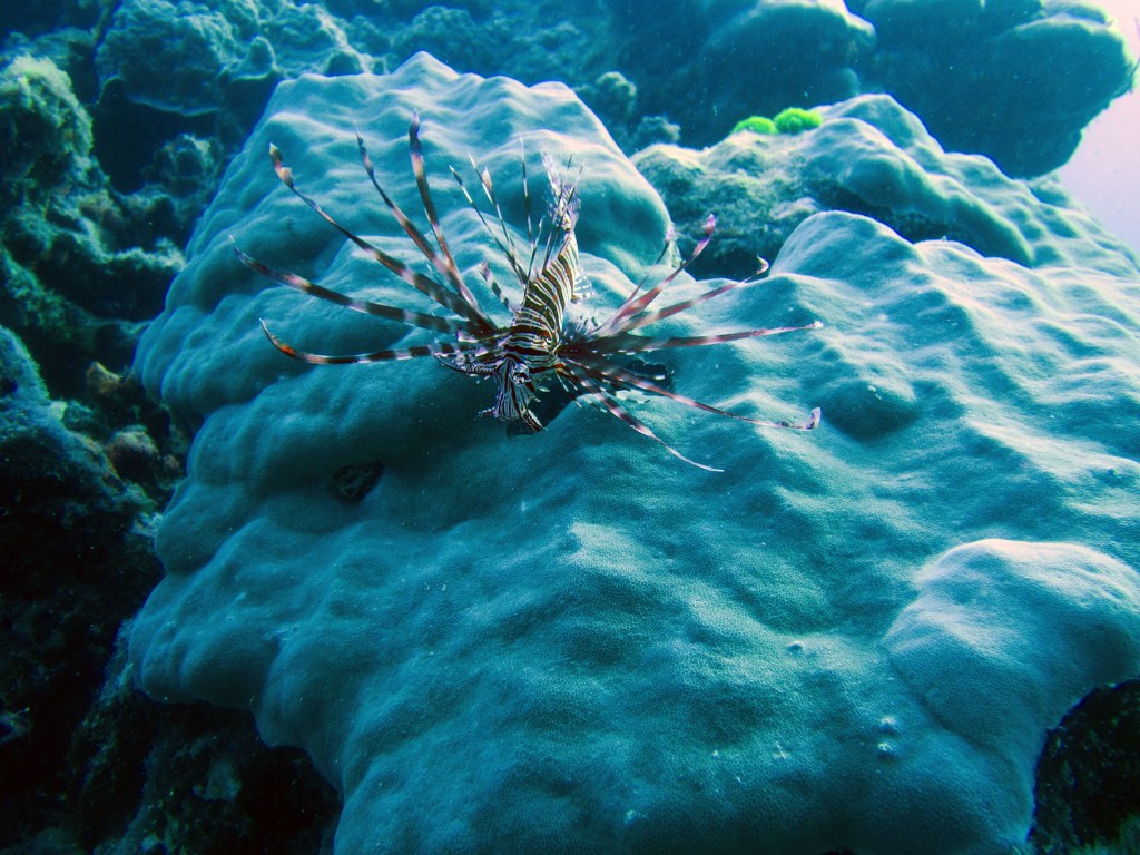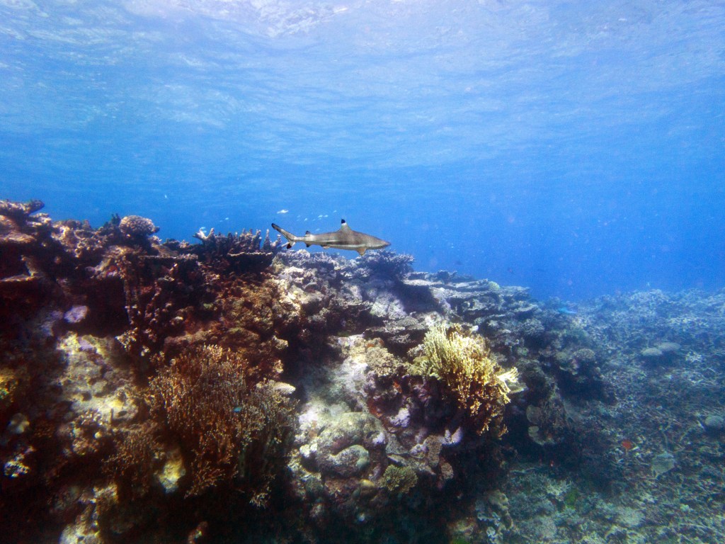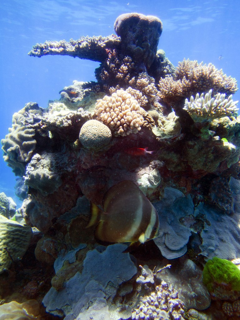 De retour sur le site de Grodons, où « Mickey Mouse » se trouve, nous apercevons durant un court instant un requin à pointe noire ! Nettement plus rare que son cousin à pointe blanche. La chance reste avec nous, car des tortues nagent dans le coin également 🙂 Nous avons même l’opportunité de croiser une tortue Hawksbill qui mangeait sur des coraux. Elle sont malheureusement en grave danger d’extinction. Au moment de quitter l’eau, nous voyons même un barracuda qui zone juste sous la coque du bateau.
